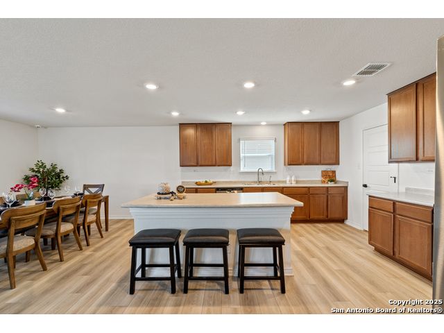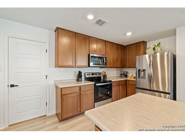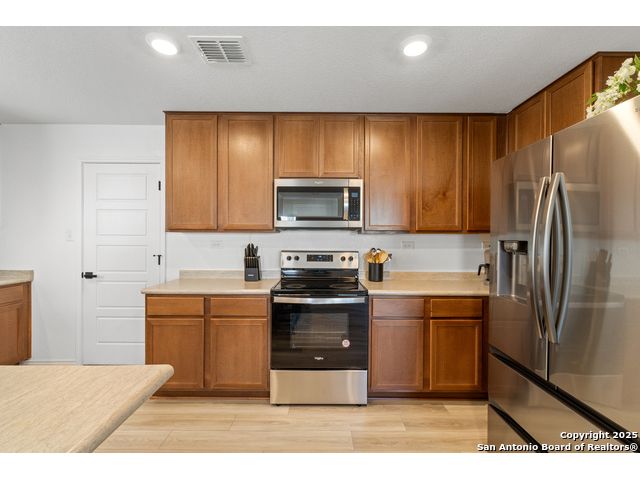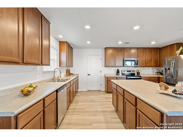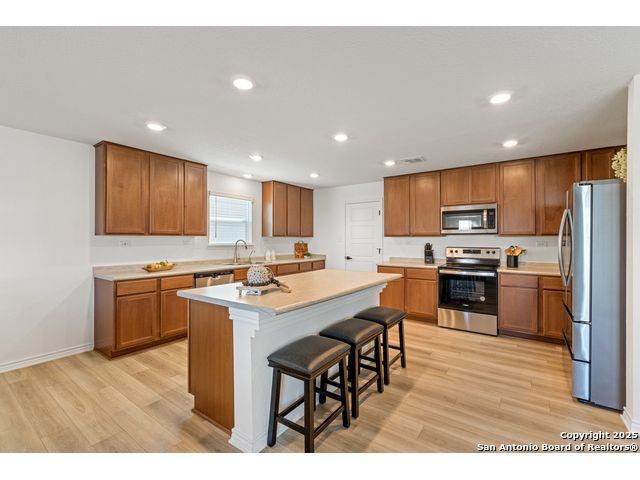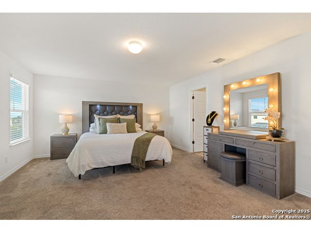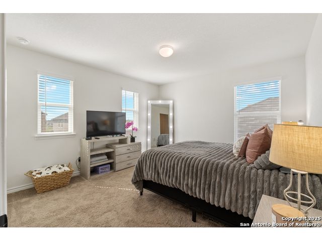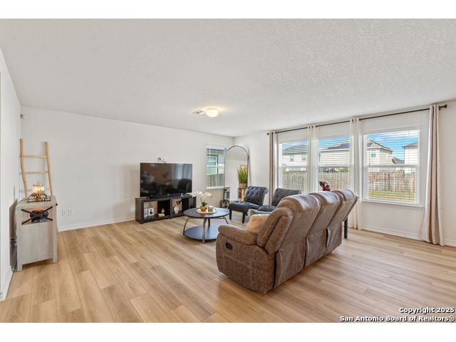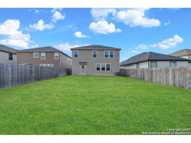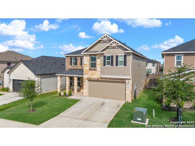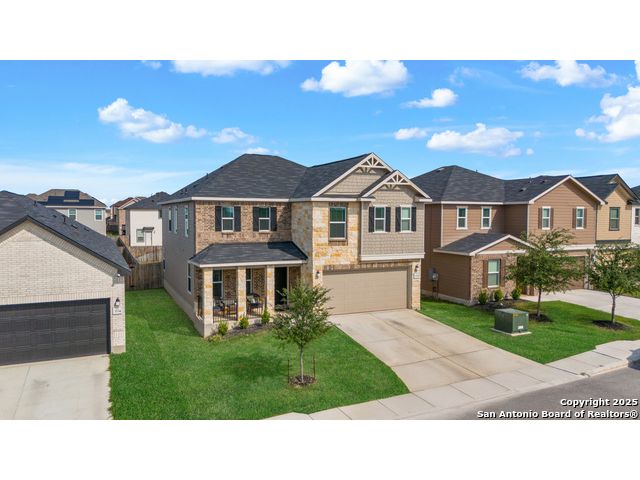 Welcome to this beautiful recently built KB Home located in the desirable Champions Manor community. This spacious two-story home features 5 bedrooms and 3.5 bathrooms, all nestled on a generously sized lot. Upon entering, you'll be greeted by a bright, open-concept floor plan that seamlessly flows into the kitchen which boasts stainless steel appliances, a large island, and ample cabinetry for all your storage needs. The first floor also offers a private guest bedroom with a full bathroom, making it ideal for visitors or as a dedicated office space. Upstairs, you'll find a generously sized primary suite, offering an expansive bathroom with a shower/tub combo, large double vanity, and a roomy walk-in closet. The second floor also includes a versatile game room/loft, plus 3 additional bedrooms to accommodate your family's needs. Outside, the large backyard with plenty of room is perfect for family and friend's gatherings. Conveniently located near 1604 Loop, Hwy 90, shopping, and dining, this home is a must see!