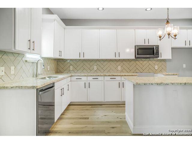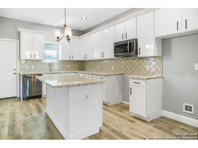 Experience modern living in this beautifully updated home featuring an open floor plan that creates a bright, spacious, and inviting atmosphere. Enjoy laminate flooring throughout, a fully remodeled kitchen with updated cabinets, granite countertops, and recently installed appliances. This move-in ready home offers a perfect blend of comfort and style with thoughtful upgrades throughout. Ideally located near downtown, the military base, and Frost Bank Center, it's a fantastic choice for military personnel and commuters alike. Cozy, convenient, and contemporary-schedule your showing today!