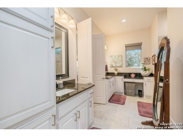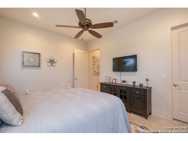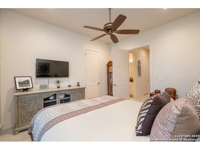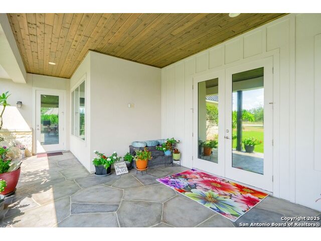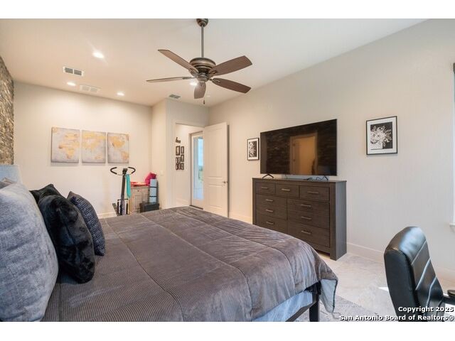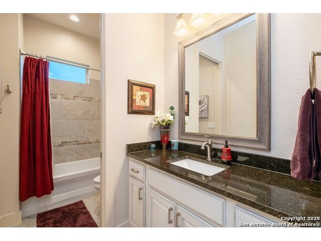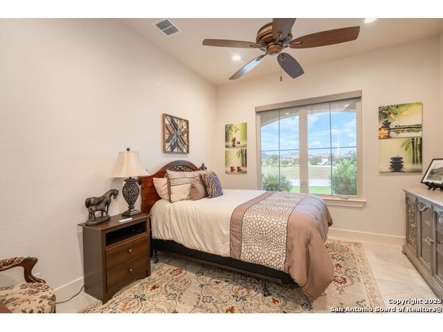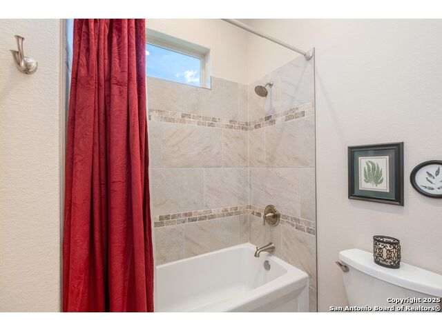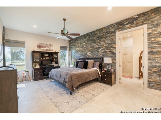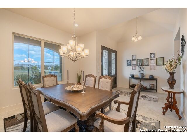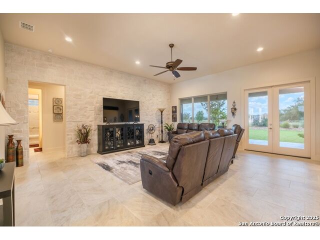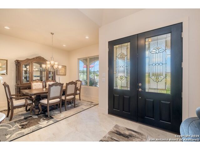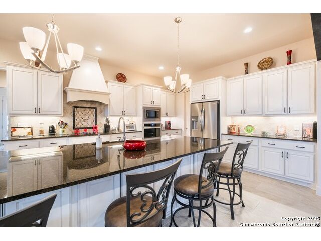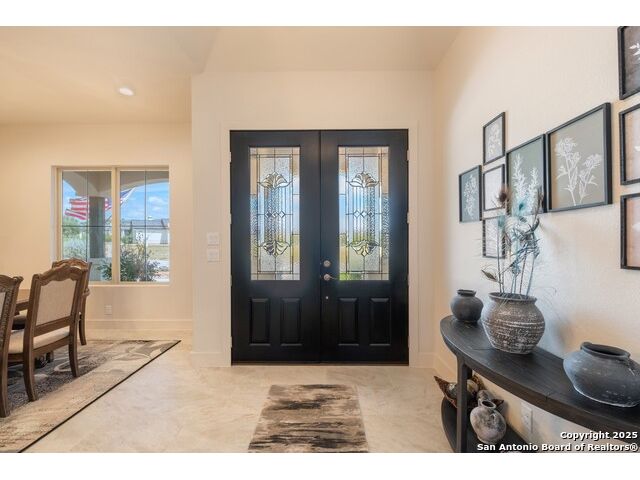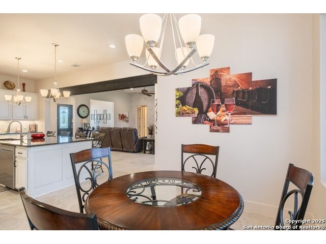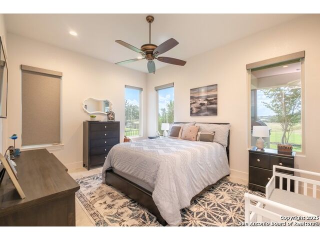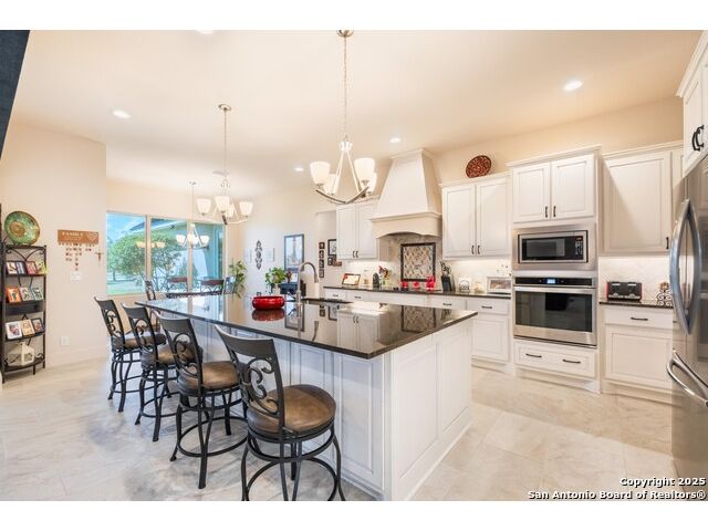Experience Hill Country living at its finest in this stunning 3-bedroom, 2-bath custom home set on a spacious 0.57-acre lot in the prestigious Comanche Trace community. Built in 2020, this 2,689 sq. ft. single-story residence blends thoughtful design, modern comfort, and resort-style amenities in a highly sought-after golf cart community. Inside, the split floor plan offers privacy and functionality, with the primary suite tucked on one side and two secondary bedrooms on the other. Just off the foyer, a separate dining room offers an elegant space for gatherings. The spacious open-concept living area features a stone accent wall, wood beam detail, and large windows that fill the space with natural light. The kitchen is designed for both style and function, showcasing granite countertops, stainless steel appliances, abundant cabinetry, a walk-in pantry, and a large center island with breakfast bar seating. The primary suite is a retreat of its own, highlighted by a striking stone accent wall and an ensuite bath with dual vanities, a walk-in shower, and generous storage. The home also includes a 2-car side-entry garage plus a golf cart bay, providing both storage and convenience. The home emphasizes outdoor living with a spacious back porch that serves as an extension of the living space. Complete with a grill, its ideal for entertaining or simply relaxing while enjoying Hill Country views. Additional upgrades include a durable metal roof, ceramic tile flooring throughout (no carpet), tinted windows with remote shades, and motorized bedroom shades that will remain with the home. Living in Comanche Trace means more than just owning a beautiful home, it's about embracing a lifestyle. Residents enjoy 27 holes of championship golf, a country club with restaurants, pool and kids water park, pickleball courts, hiking trails, frequent community events, and Guadalupe River access. The community also offers excellent accessibility, just minutes from Tivy High School and Antler Stadium. This property combines elegance, functionality, and an unmatched community atmosphere, an exceptional place to call home.