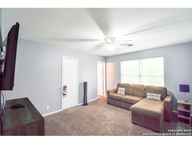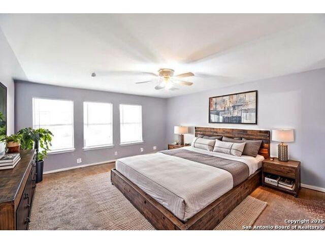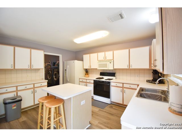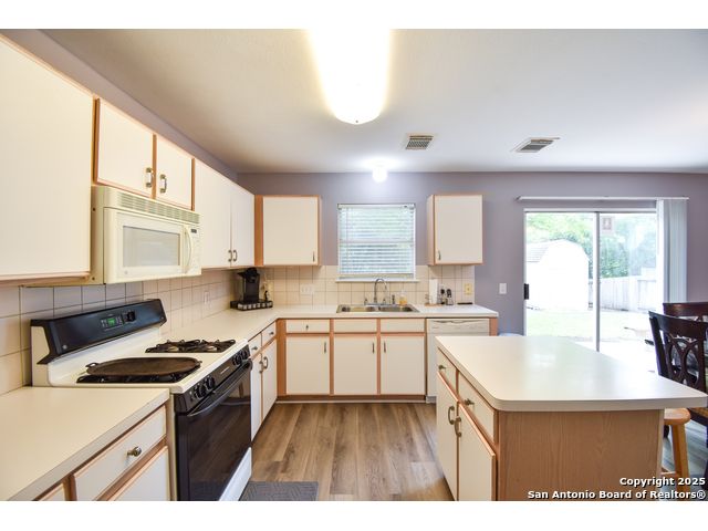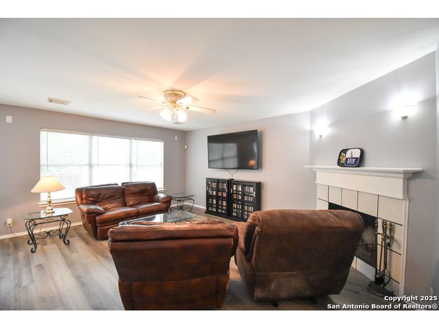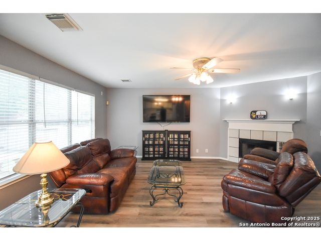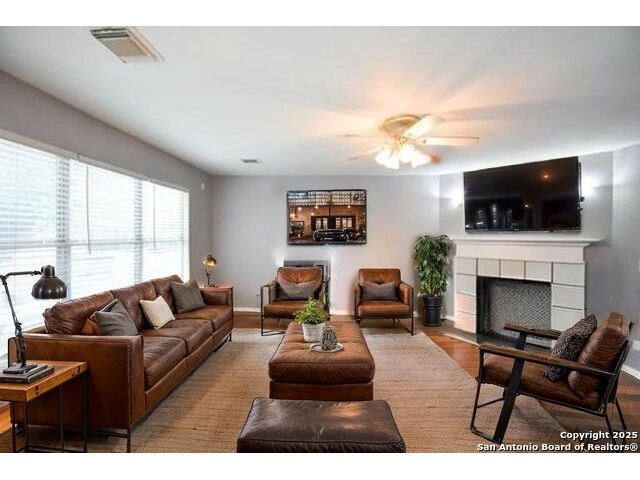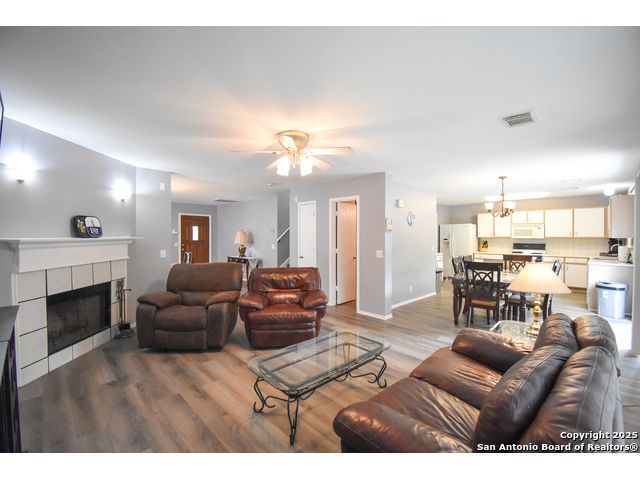This beautifully maintained 4-bedroom, 2.5-bathroom home offers generous living space, modern comforts, and inviting charm throughout. Step inside to find a bright, open living room featuring sleek flooring, neutral paint tones, and a cozy fireplace-perfect for relaxing or entertaining. The large windows allow plenty of natural light to flood the space, enhancing the home's airy feel. The kitchen is a true standout with abundant cabinetry, a central island for prep or casual dining, and a seamless flow into