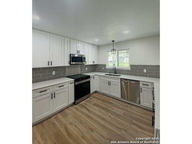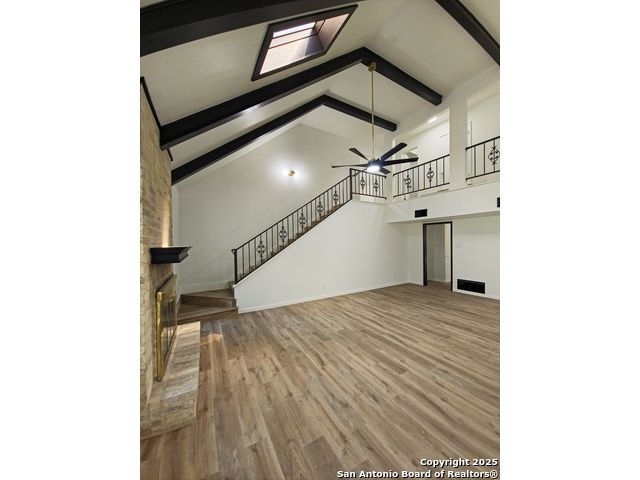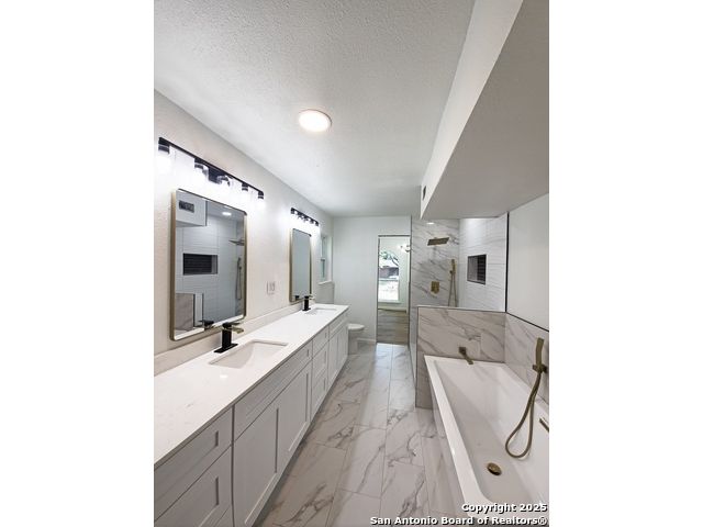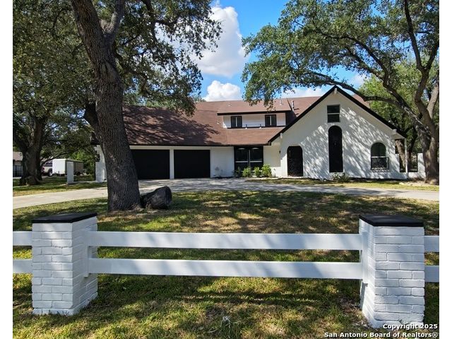Stunning Colonial Hills Retreat - Welcome to your dream home in the highly sought-after Colonial Hills community. This 5-bedroom, 3.5-bathroom masterpiece surrounded by mature trees and friendly deer, offering both tranquility and convenience. Step inside to be greeted by a oversized office at entry, continue inside to soaring vaulted ceilings with exposed beams, and a bright open-concept floor plan designed for entertaining and everyday comfort. The chef's kitchen boasts an expansive island, custom cabinetry, and seamless flow into the spacious living and dining areas. Retreat to the luxurious primary suite, featuring a massive walk-in closet and a designer spa bath with freestanding soaking tub and oversized walk-in shower. Upstairs, discover a flex space perfect for a man cave, craft room, or homeschooling hub, along with large bedrooms offering generous storage throughout. Outdoors, enjoy a balcony overlooking the scenic lot, a circular driveway, and a two-car garage with ample parking. The property's quiet, established neighborhood is zoned to top-rated schools, making it ideal for families seeking both space and community. This home delivers the perfect blend of luxury, comfort, and lifestyle in one of San Antonio's most desirable areas. Don't miss the chance to this updated Colonial Hills home yours! Selling below Tax Assess Value and Appraisal Schedule your private showing today! As-Is
