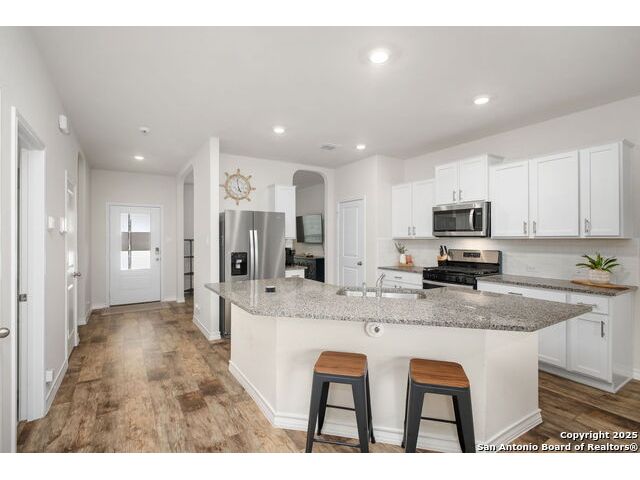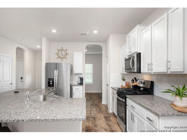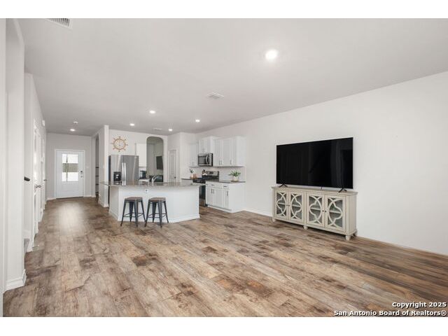 Beautifully maintained, barely lived-in home on a peaceful greenbelt! This 5-bedroom, 3.5-bathroom home features an open-concept layout, gourmet kitchen with stainless steel appliances, and a spacious family room. The private main suite offers a luxurious bath and walk-in closet. Enjoy the covered back patio overlooking the greenbelt.Community highlights: 2 huge pools, amenity center, elementary school within walking distance, and so much more.