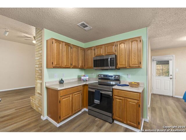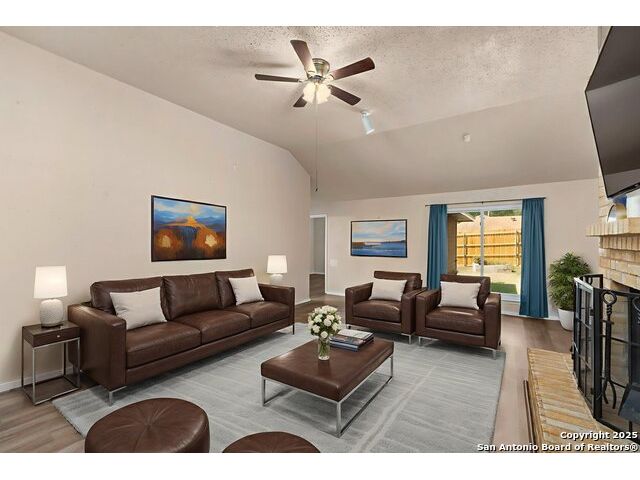 *ASSUMABLE 2.875 INTEREST RATE** Fabulous single story home in Live Oak features high ceilings, central fireplace, and open split four bedroom floor plan! Recent updates include luxury vinyl plank throughout, beautifully renovated baths with new tile tub surrounds and quartz-topped double vanities (2024-25), partial new fence (2025), smooth top stainless stove with air fryer (2021), and water heater (2022). Home boasts updated windows and light fixtures, as well as walk in closets and ceiling fans throughout. Outside, enjoy the ample yard space perfect for relaxation or entertaining. The patio slab and charming gazebo create an ideal setting for gatherings or quiet evenings outdoors. Located near Woodcrest Park, this property offers easy access to recreational opportunities and the natural beauty of the area.