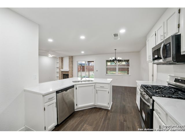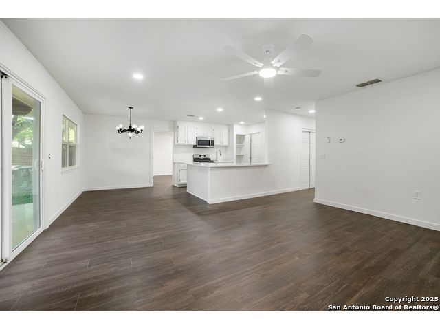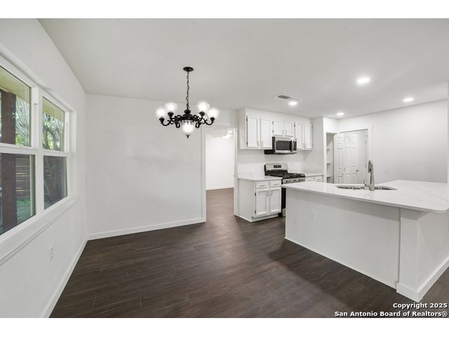 Welcome to this beautifully renovated home, thoughtfully updated with modern finishes throughout. This bright and spacious open-concept layout flows seamlessly from the living room to the dining area, creating an ideal space for everyday living and entertaining. The heart of the home is a stunning oversized kitchen island that anchors the space. Step outside to a generously sized backyard complete with a covered patio perfect for entertaining, weekend barbecues, or relaxing year-round. Located in a sought-after area of San Antonio, this home blends style, comfort, and functionality in one beautiful package. Don't miss the opportunity to make it yours!