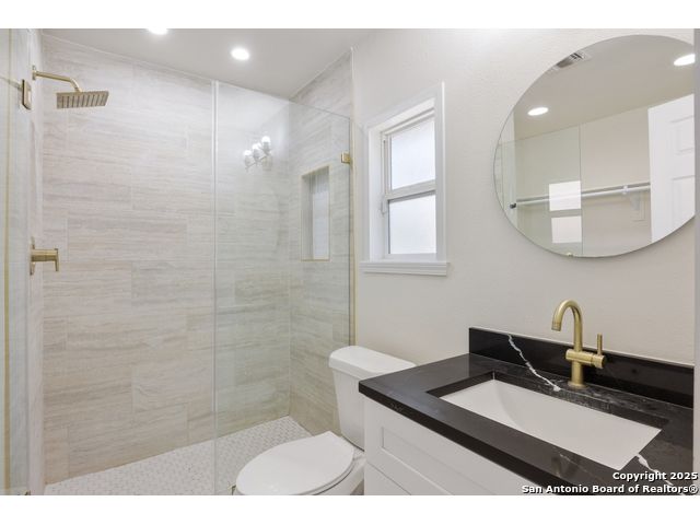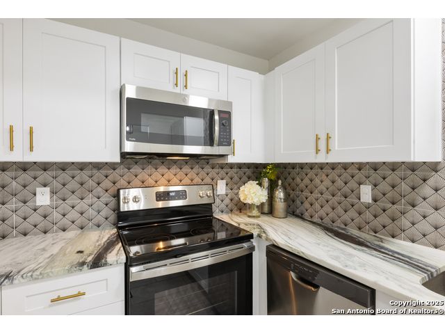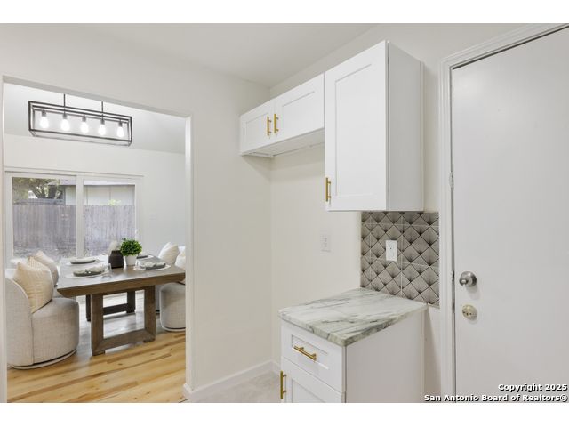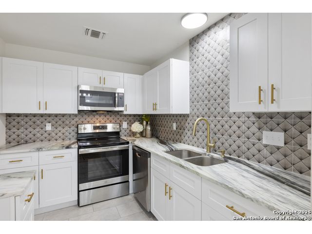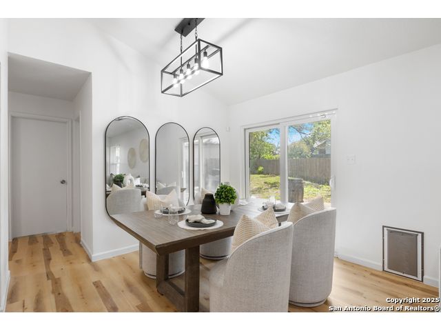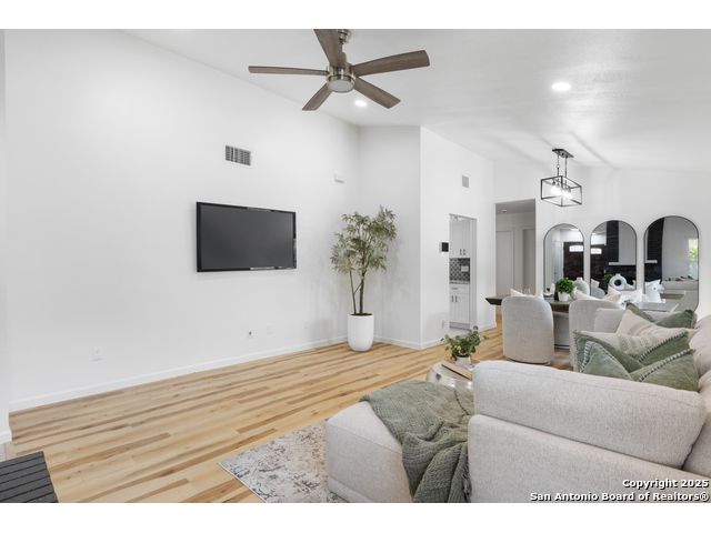Welcome to your cozy abode, a beautifully remodeled gem nestled in a serene cul-de-sac. This property, updated in 2023, showcases exquisite finishes typically found in higher-end homes, offering you both luxury and comfort. Imagine stepping into your new home with its tall ceilings that elevate the living and dining areas, creating an open and inviting atmosphere perfect for entertaining or relaxing with family. Outdoor enthusiasts will rejoice in the oversized yard, providing ample space for gardening, play, or simply basking in the sun. Plus, with McAllister Park just a short walk away, you'll have easy access to trails and green spaces for your daily walks or weekend adventures. Benefit from practical updates such as newer windows and gutters, ensuring your home is as efficient as it is beautiful. A brand new roof provides peace of mind and durability for years to come. The kitchen is a chef's delight, featuring stunning granite countertops and new cabinets that add a touch of elegance to this culinary haven. Additional features include a paid-off water softener for pristine water quality and a convenient shed for extra storage space. The fresh flooring and paint throughout the home add a modern flair, making it ready for you to move in and make it your own. Enjoy the tranquility of low traffic and ample parking that comes with cul-de-sac living. Welcome home to your dream retreat-where luxury meets comfort in every corner.