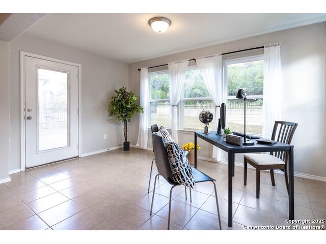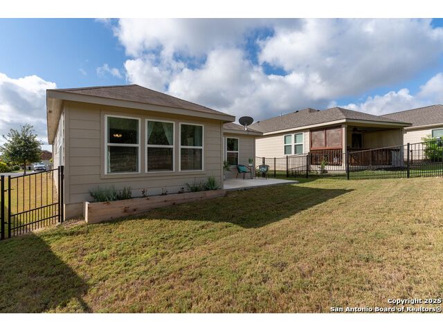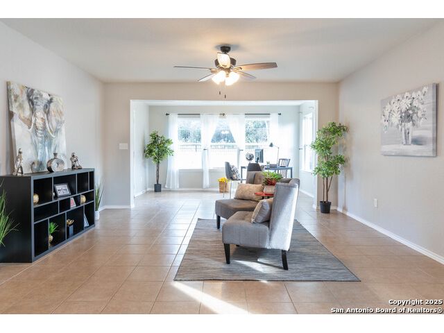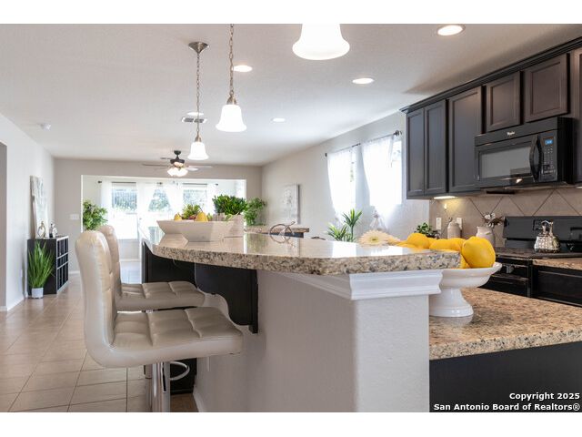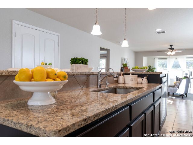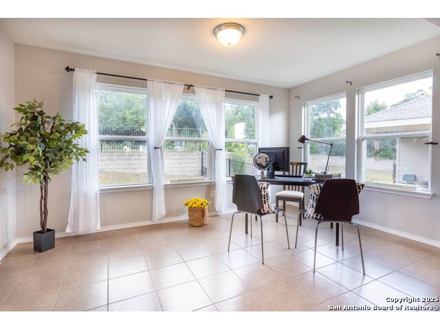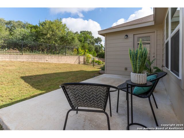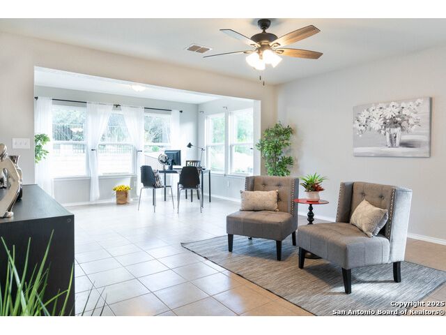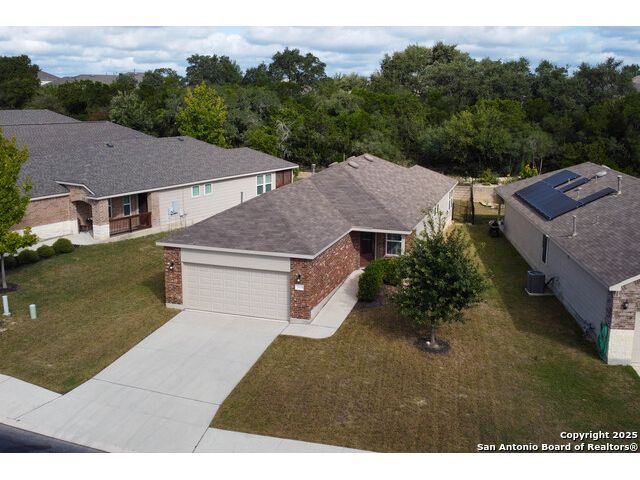 SUNROOM SERENITY ON THE GREENBELT!! Freshly painted and move-in ready, this bright and inviting home is perfectly designed for comfortable living in the active 55+ Hill Country Retreat community. Step inside to an open floor plan filled with abundant natural light, ceramic tile flooring throughout, and a welcoming front door with wrought iron design and rainfall glass. The granite kitchen is a true centerpiece with gas cooking, breakfast bar, abundant cabinetry, and recessed lighting. The split master suite offers privacy, a spacious closet, double vanity, and walk-in shower. Enjoy morning coffee or quiet afternoons in the sunroom with serene greenbelt views, or relax outdoors on the newly updated back patio with wrought iron fencing. This home is packed with thoughtful upgrades including double-hung vinyl windows for easy cleaning, water softener and filtration system, ceiling fans in all bedrooms and living areas, insulated garage door, and whole-house surge protection. Located in a vibrant, gated community with resort-style amenities-clubhouse, indoor and outdoor pools, walking trails, gym, pickleball, and more-this home is perfect for those seeking an easy-to-maintain, low-stress lifestyle with plenty of opportunities for connection and recreation. SEE THIS ONE TODAY!!