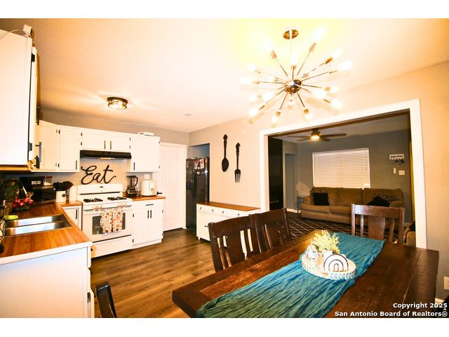 Welcome to this beautifully updated 3-bedroom, 1-bathroom home offering modern finishes and thoughtful updates throughout. With 1,195 sq ft of living space, this cozy home is move-in ready and perfect for first-time buyers, small families, or anyone looking for a stylish and comfortable place to call home. Step inside and enjoy the open kitchen and dining area, featuring updated cabinetry, modern hardware, and a stylish accent wall that adds character and warmth to the space. The remodeled bathroom is a showstopper, boasting a walk-in shower with floor-to-ceiling tile, matte black fixtures, and statement lighting accents. The home offers three spacious bedrooms, including a primary suite with a walk-in closet-a rare find at this price point! The garage has been thoughtfully converted into the third bedroom, providing extra space and versatility for your needs. Outside, you'll find a covered carport with wood ceiling detail, a spacious driveway, and a backyard ready for gatherings, gardening, or relaxing evenings under the trees. This home blends comfort, style, and affordability-don't miss your chance to make it yours!
