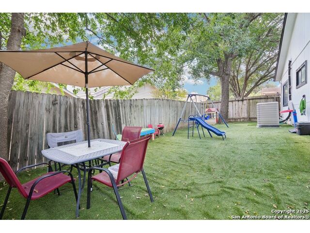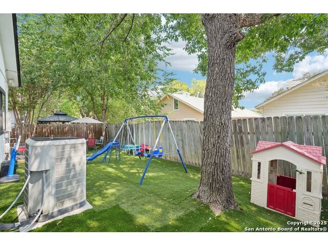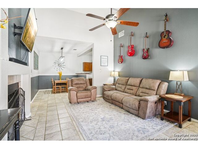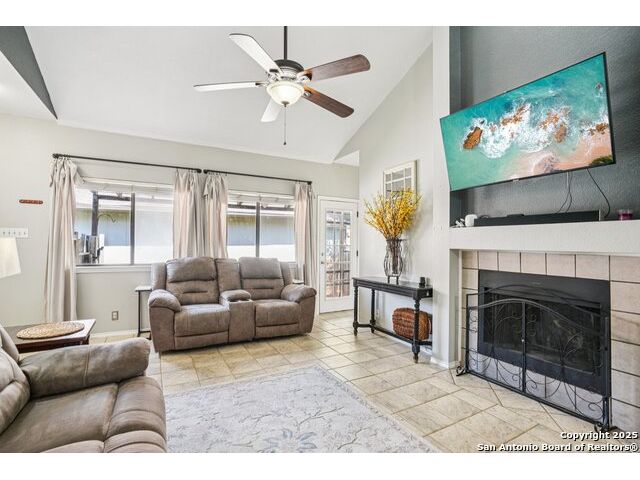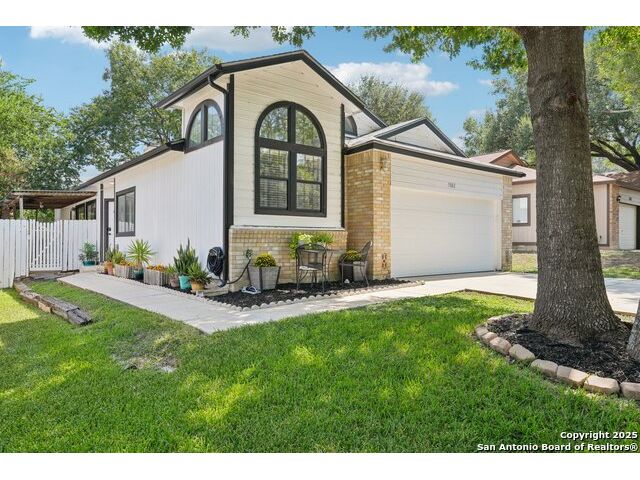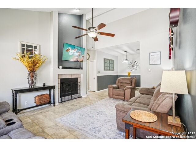 Our lender partner is offering to cover the entire downpayment and closing costs, up to $17,500, with competitive rates available in the 5% range. This inviting, move-in ready home features three bedrooms and two bathrooms, with soaring ceilings and a cozy fireplace in the living room. The thoughtful split master layout includes a spacious, unique master bathroom for added comfort. The interior boasts tile and vinyl flooring throughout-no carpet-for easy maintenance and modern appeal. Outside, the backyard is perfect for gatherings, offering a large covered porch and turf for effortless upkeep. The property also conveys with a playscape and refrigerator, adding to its convenience and charm.