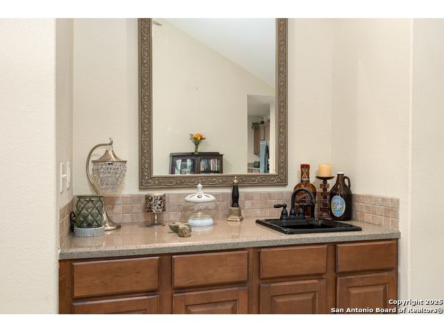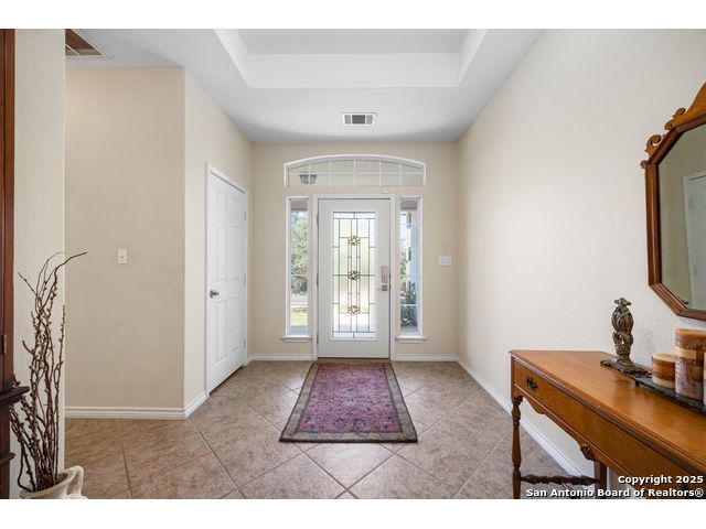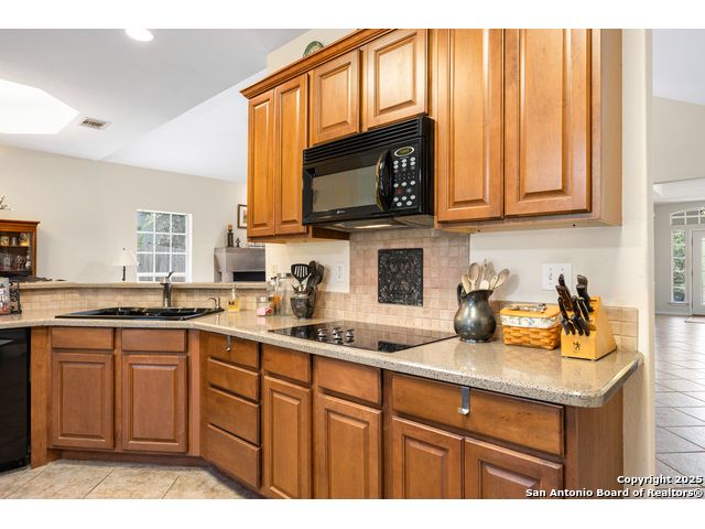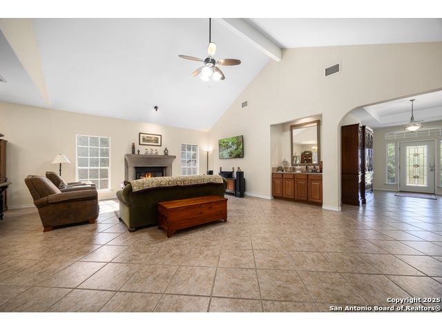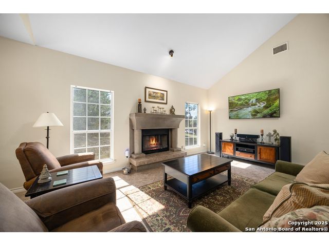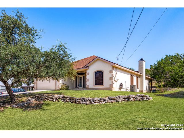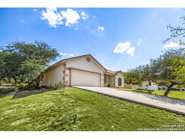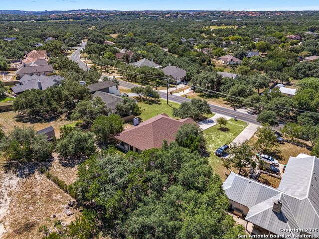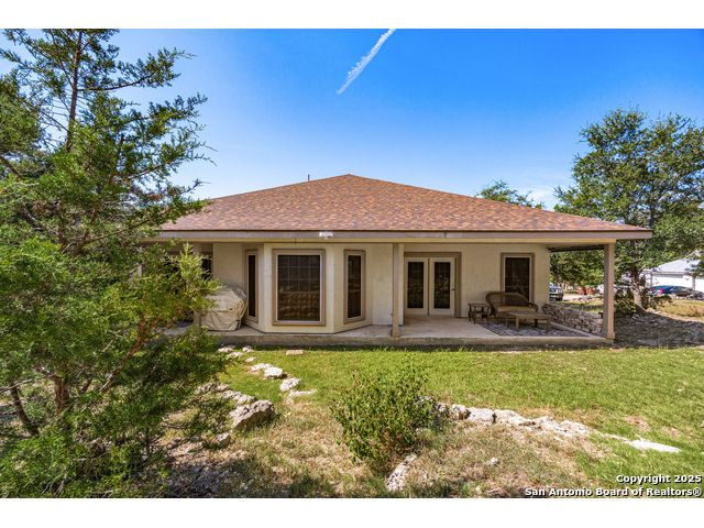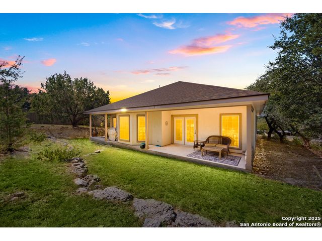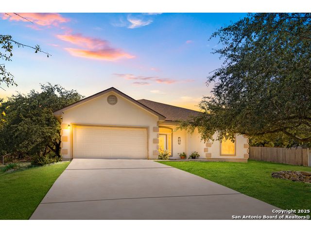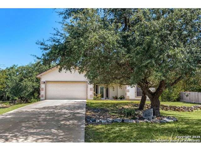 Lovely one-story home located in the serene community of Timberwood Park, surrounded by mature trees an abundance of wildlife. This custom home sits on .46 acre and features high ceilings, a spacious open floor plan, and ceramic tile flooring throughout the main living areas, kitchen, and bathrooms. The large kitchen offers plenty of space for cooking and gathering, with custom maple cabinets, Corian countertops, and an open layout that connects to the dining and living areas. The primary suite includes a garden tub, separate shower, double vanity, and walk-in closets for added convenience. Step outside to enjoy the spacious backyard with a covered patio and plenty of shade provided by beautiful trees. Recent updates include a roof replaced in October 2023, AC core and blower replaced in May 2018, solar screens added in May 2025, new flooring in the primary suite and carpet replaced in the bedrooms in May 2024, plus septic pumped and inspected in September 2025. This home is just a short drive to schools, parks, TX-281, and more. Schedule your personal tour today!