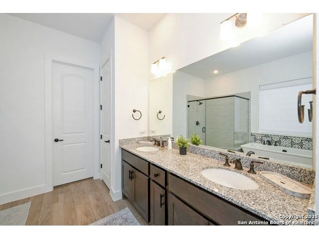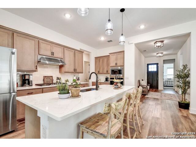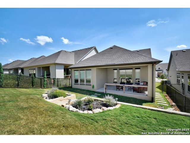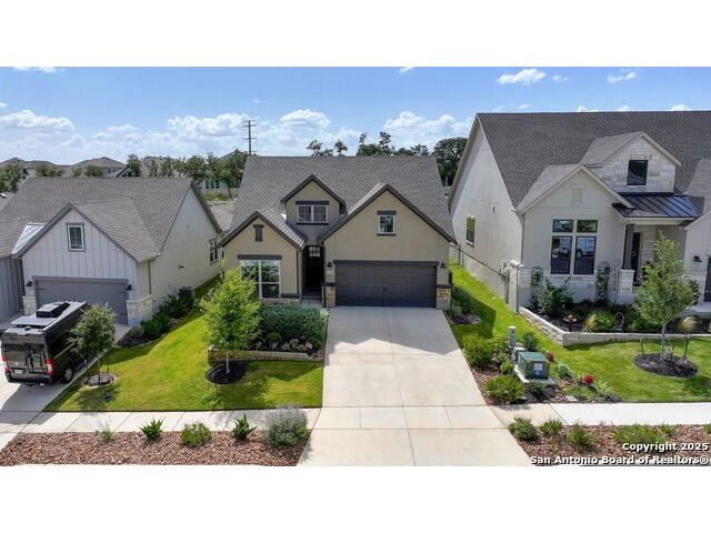 OPEN HOUSE SATURDAY 11/15 FORM NOON - 3 PM. Move in and begin your next chapter in this practically brand-new, single-story home, built in 2023, and located just steps from the amenity center of a premier 55+ community in Boerne, TX. This 1,873-square-foot residence offers a low-maintenance lifestyle with luxurious modern features and the convenience of resort-style living right outside your front door. Why wait to build when you can own this stunning, turn-key home, perfect for a quick and stress-free closing process? This home showcases a contemporary, single-level floor plan with two spacious bedrooms and two full baths. The stylish eat-in kitchen is equipped with high-end stainless steel appliances, pristine quartz countertops, and a large island for casual dining or entertaining guests. The owner's suite features a private bath with a double vanity and a sizable walk-in closet, providing a serene retreat. The home's prime location offers unparalleled access to the community's exclusive amenities, including the clubhouse, fitness center, multiple sport courts and pool. Enjoy an extensive calendar of social events and activities planned by a lifestyle director. Located minutes from Boerne's historic Main Street, you'll have boutique shopping and highly-rated dining at your fingertips.
