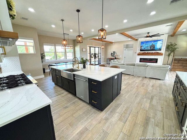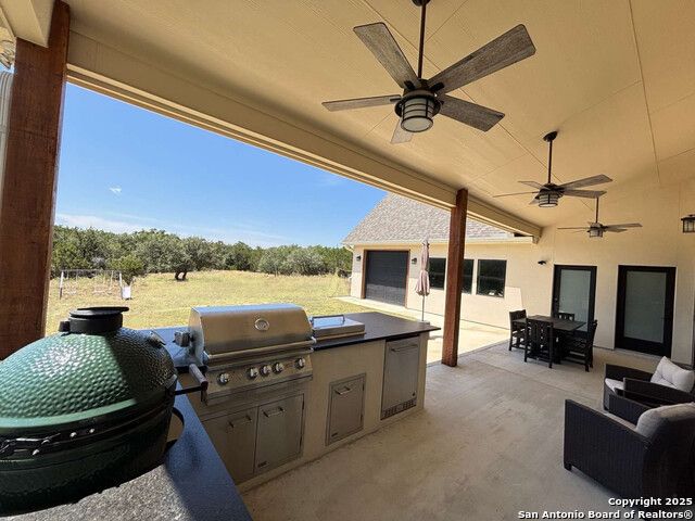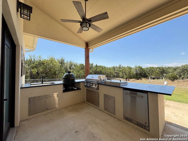 **** Seller Offers 4 points towards a Rate BuyDown for qualified buyers **** Welcome Home! Nestled in the highly sought-after Havenwood gated community, this modern farmhouse sits on a quiet cul-de-sac within a 1.5-acre lot, offering 3,500 square feet of thoughtfully designed living space. The home features five bedrooms, four and a half bathrooms, a loft, a flex room, and a private office, perfectly blending functionality with timeless style. The open-concept floor plan showcases a chef's kitchen with custom cabinetry, an oversized island, a butler's pantry, and premium finishes. A spacious living area flows seamlessly into the dining and kitchen spaces, creating an ideal setting for both everyday living and entertaining. The loft is kitchenette-ready, providing additional flexibility for a guest suite, game room, or private retreat. Step outside to enjoy the serene, peaceful backyard, perfect for relaxing or entertaining. Additional highlights include tankless propane water heaters, 2x6 framing with spray foam insulation in the exterior walls and attic, gas cooking, and an outdoor kitchen. Every closet features custom built-ins, while the office, pantry, and master closet are accented with butcher block counters. Matching quartz countertops are found throughout, and the home offers ample attic storage, custom finishes, and versatile living areas to fit your lifestyle. Located in the esteemed Comal ISD with top-rated schools, this property combines the best of both worlds-peaceful Hill Country living just minutes from shopping, dining, and all the comforts of town.
