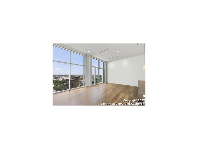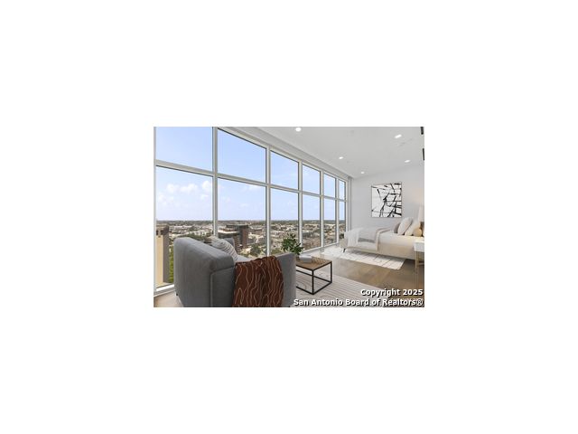 Perched on the 17th floor of San Antonio's most prestigious residential tower, this junior penthouse offers a refined blend of scale, service, and design. With two spacious bedrooms, three and a half bathrooms, and sweeping city views through floor-to-ceiling glass, this residence delivers elevated downtown living with privacy, style, and luxury hotel living convenience. Designed for effortless living and entertaining, the open-concept layout is wrapped in floor-to-ceiling glass and flooded with natural light. The chef's kitchen features Italian cabinetry, premium quartz countertops, and professional-grade Gaggenau appliances-including gas cooking, a rare find in high-rise living and full wine fridge. The primary suite offers true luxury with two private spa-style bathrooms and a custom walk-in closet. Built for comfort and privacy, the residence includes wide-plank hardwood flooring, motorized shades, and heavy soundproofing throughout. Two reserved parking spaces with a fully enclosed private garage add security and convenience rarely available in downtown condos. As an owner, enjoy 24/7 concierge and valet services, in-residence dining, a rooftop pool and cabanas, full-service spa, fitness center, and exclusive access to two acclaimed restaurants-all seamlessly available into your daily life. With the River Walk and Tobin Center steps away, this is true lock-and-leave living at the intersection of culture, convenience, and five-star service. Experience downtown San Antonio at its finest-schedule your private showing today.