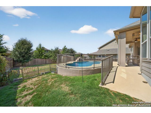 A Stunning Home in Davis Ranch with Poolside Perks Step into this gorgeous 6-year-old home in Davis Ranch, offering nearly 3,000 square feet of stylish living space. The open-concept design creates a seamless flow from the spacious kitchen-complete with solid surface countertops and an oversized island-into the formal dining area, perfect for family gatherings. The private master suite feels like a personal spa with an oversized shower and elegant tile floors. Need space to work or unwind? You'll love the dedicated office and media room-ideal for both productivity and relaxation. With four bedrooms in total, there's plenty of room for everyone. The home boasts excellent curb appeal with three-side masonry for low maintenance, plus it's located in a quiet cul-de-sac for added privacy. The backyard is an entertainer's dream, with a covered patio leading directly to the pool-no steps required! A large yard offers ample space for pets or play, and a generously-sized storage building adds extra convenience.
