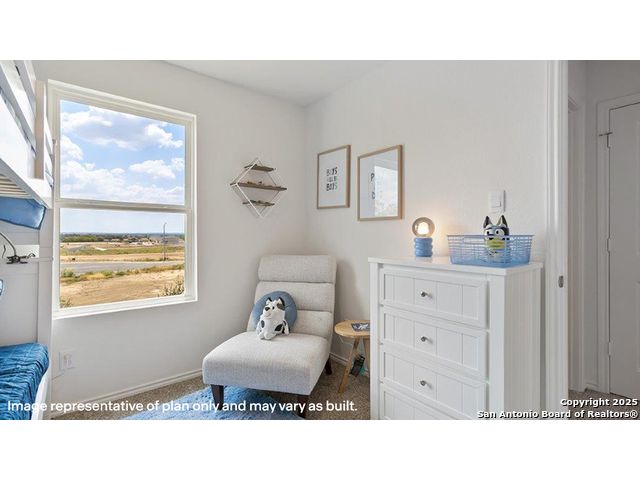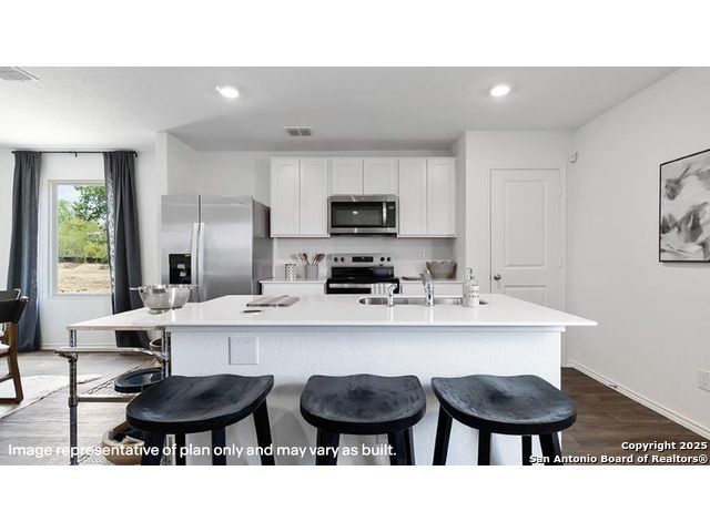 The Franklin plan is one of our two-story homes featured in Avenida in Converse, TX. This new home layout offers 2 classic front exteriors, 5 bedrooms, 2.5 baths, 2 car-garage and 1891 square feet of comfortable living. Step inside The Franklin to find an elongated foyer opening to an open concept living room, kitchen, and dining area. The gourmet kitchen faces the living area so you don't miss a thing while cooking and includes quartz counter tops, stainless steel appliances and shaker style cabinetry. The main bedroom is located toward the front of the home on the second story and features an attractive attached bathroom with a walk-in shower, quartz countertops, a grand walk-in closet and plenty of storage space. The second story includes all secondary bedrooms, and two full bathrooms. You'll have carpeted floors in every bedroom and sheet vinyl flooring in your bathrooms and utility room. Additional features include sheet vinyl flooring in entry, living room, and all wet areas, quartz counter tops in all bathrooms and HOME IS CONNECTED base package. Using one central hub that talks to all the devices in your home, you can control the lights, thermostat and locks, all from your cellular device.
