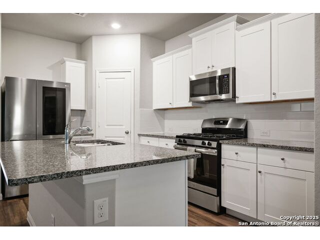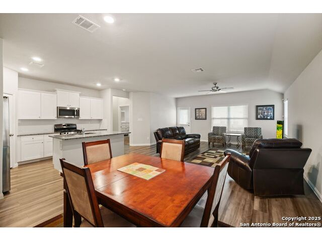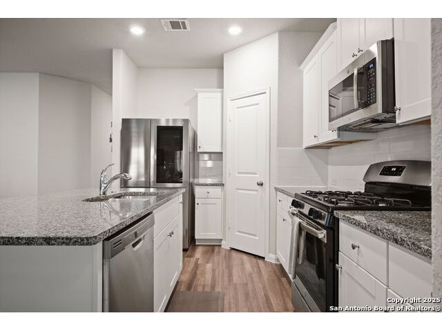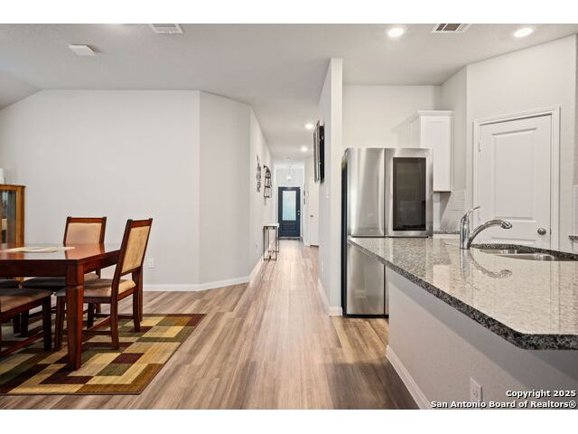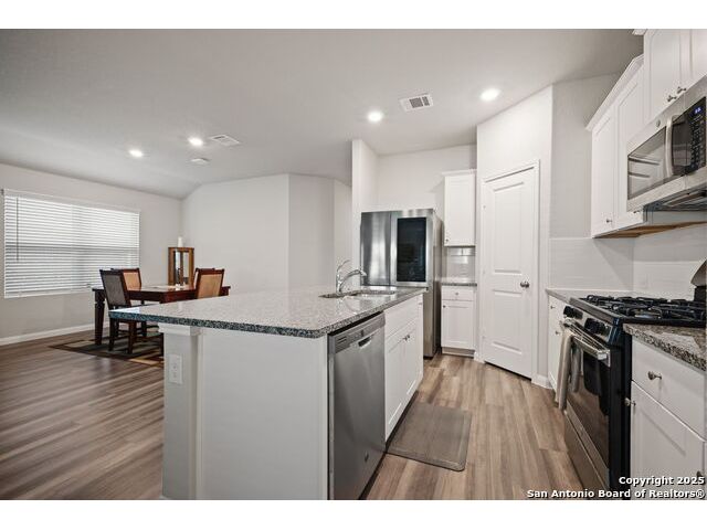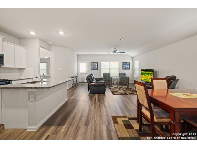 Located in the sought-after Wortham Oaks GATED community, this stunning 2020 single-story home showcases exceptional care and modern design throughout. The open-concept floor plan features high ceilings, abundant natural light, and elegant finishes that create a warm, inviting atmosphere. The chef's kitchen offers granite countertops, a large island, and stainless-steel appliances - with the refrigerator, washer, dryer, and water softener all included for a truly move-in-ready experience. The spacious primary suite provides a relaxing retreat with a walk-in shower and generous closet space, while additional rooms offer versatility for your lifestyle needs. Blending comfort, style, and everyday convenience, this home exemplifies modern living in one of San Antonio's most desirable gated neighborhoods.