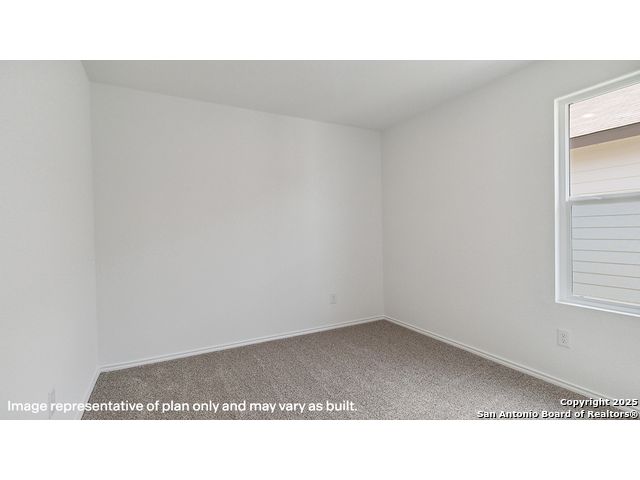 The Caprock is a charming one-story home featured at Avenida in Converse, TX. Featuring 2 classic front exteriors, this 3 bedroom, 2 bathroom home also offers 1435 square feet of living space and a 2-car garage. A front porch (per plan) welcomes you into the home and opens to the gourmet kitchen which includes quartz counter tops, quality cabinets, stainless steel appliances and an open concept floorplan with the kitchen flowing seamlessly into the dining room and living room. The main bedroom has an attractive ensuite bathroom that features a quartz vanity countertop and quality cabinetry. Enjoy additional storage with a spacious walk-in closet located off of the primary bathroom. Your secondary bedrooms all feature quality carpet flooring and a closet, and can be used as bedrooms, offices, work out spaces or other bonus rooms. The possibilities are endless with The Caprock floor plan. Additional features include sheet vinyl flooring in entry, living room, and all wet areas, quartz counter tops in all bathrooms and HOME IS CONNECTED base package. Using one central hub that talks to all the devices in your home, you can control the lights, thermostat and locks, all from your cellular device.