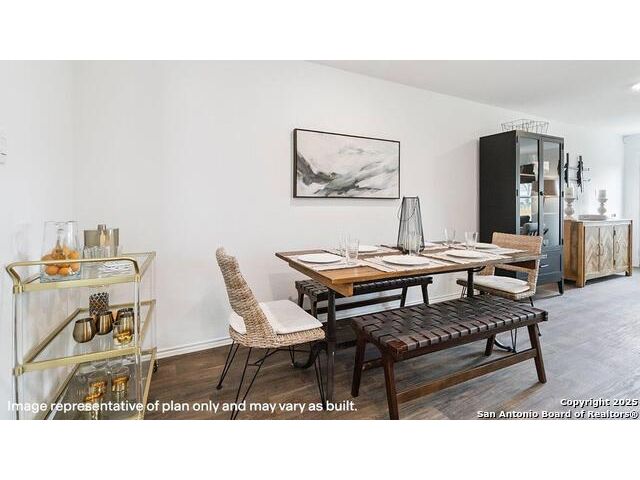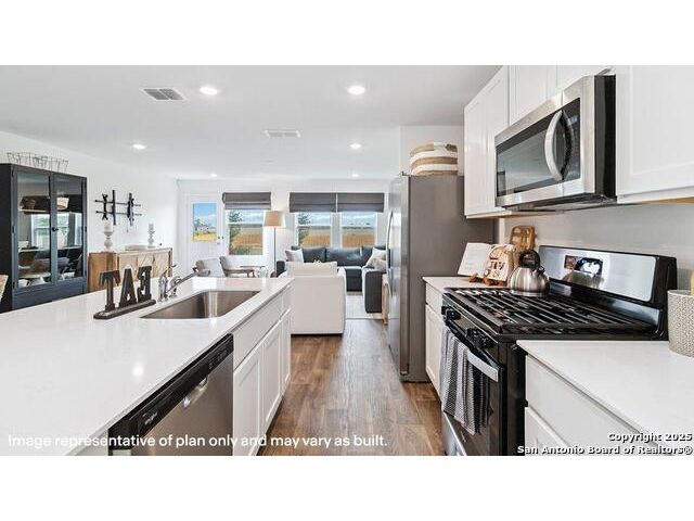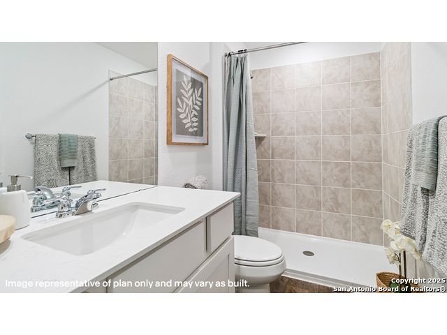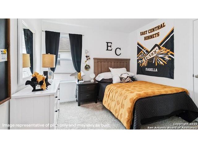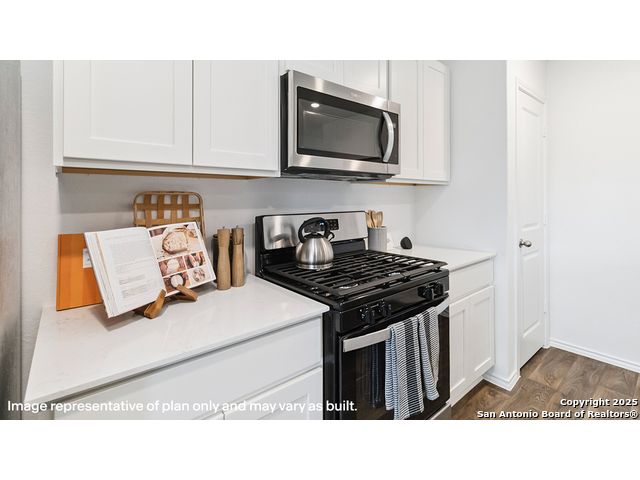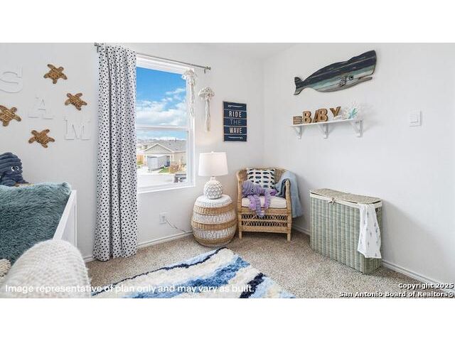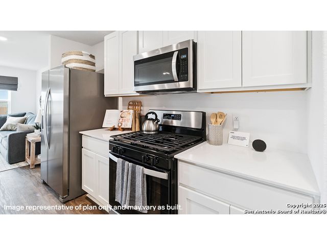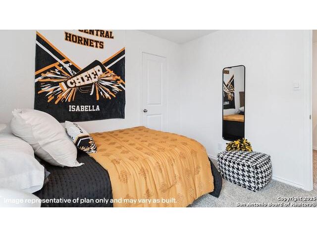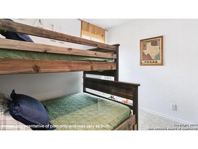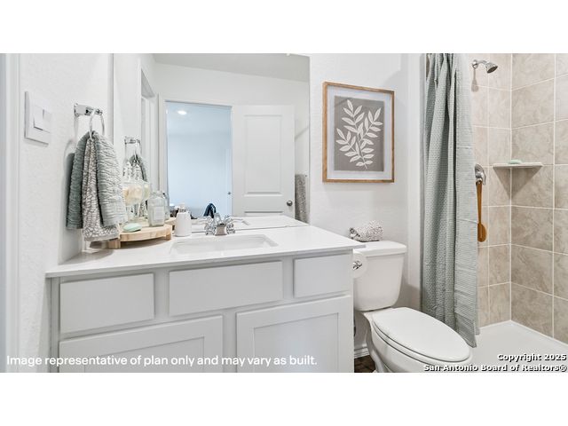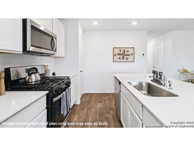 The Altaria is a charming two-story home featured at Blue Ridge Ranch in San Antonio, TX. Featuring 2 classic front exteriors, this 4 bedroom, 2.5 bathroom home also offers 1543 square feet of living space and a 1-car garage. A front porch (per plan) welcomes you into the home and opens to the gourmet kitchen which includes quartz counter tops, quality cabinets, stainless steel appliances and an open concept floorplan with the kitchen flowing seamlessly into the dining room and living room. The main bedroom has an attractive ensuite bathroom that features a quartz vanity countertop and quality cabinetry. Enjoy additional storage with a walk-in closet located off of the primary bathroom. Your secondary bedrooms all feature quality carpet flooring and a closet, and can be used as bedrooms, offices, work out spaces or other bonus rooms. The possibilities are endless with The Altaria floor plan. Additional features include sheet vinyl flooring in entry, living room, and all wet areas, quartz counter tops in all bathrooms and HOME IS CONNECTED base package. Using one central hub that talks to all the devices in your home, you can control the lights, thermostat and locks, all from your cellular device.
