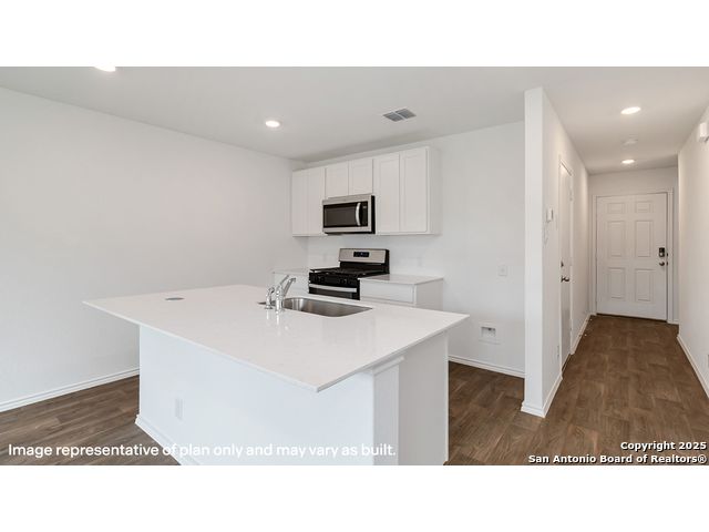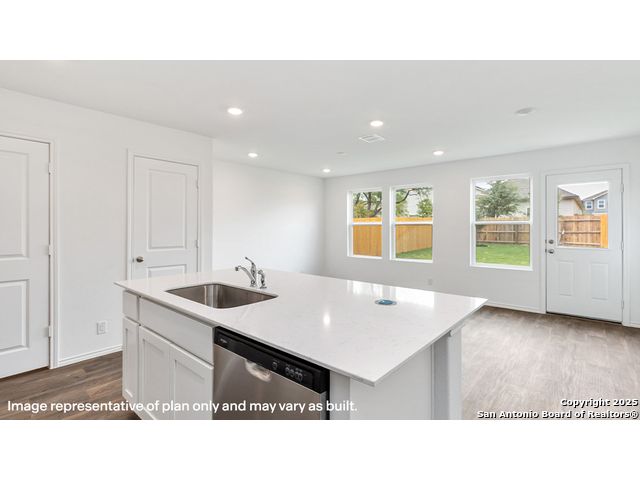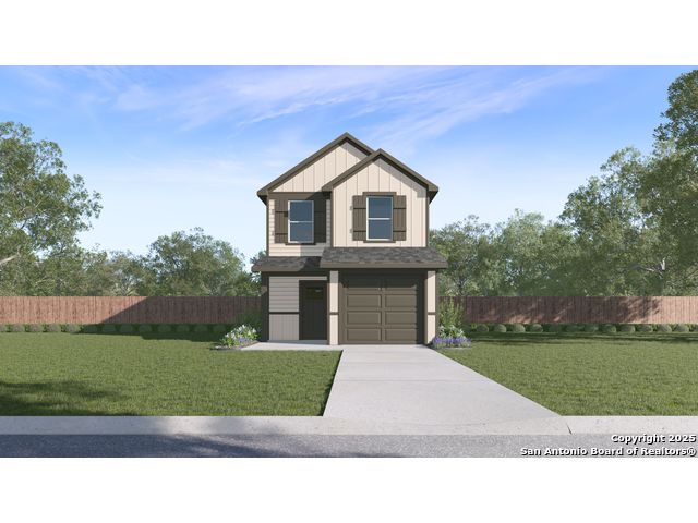 The Robin is a charming two-story home featured at Blue Ridge Ranch in San Antonio, TX. Featuring 2 classic front exteriors, this 2 bedroom, 2.5 bathroom home also offers 1130 square feet of living space and a 1-car garage. A front porch (per plan) welcomes you into the home and opens to the gourmet kitchen which includes quartz counter tops, quality cabinets, stainless steel appliances and an open concept floorplan with the kitchen flowing seamlessly into the dining room and living room. The main bedroom has an attractive ensuite bathroom that features a quartz vanity countertop and quality cabinetry. Enjoy additional storage with a spacious walk-in closet located off of the primary bathroom. Your secondary bedroom will feature quality carpet flooring and a closet, and can be used as bedrooms, offices, work out spaces or other bonus rooms. The possibilities are endless with The Robin floor plan. Additional features include sheet vinyl flooring in entry, living room, and all wet areas, quartz counter tops in all bathrooms and HOME IS CONNECTED base package. Using one central hub that talks to all the devices in your home, you can control the lights, thermostat and locks, all from your cellular device.