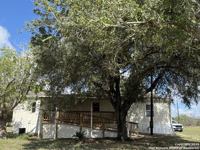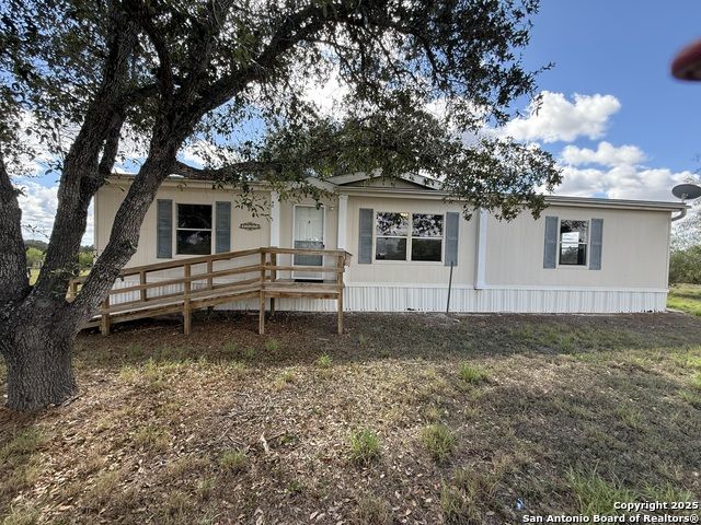 Looking for that perfect home in the country just minutes from downtown Kenedy? This 3/2 doublewide is in pristine condition with new carpet, interior touchups and a fresh coat of exterior paint. Big covered rear deck is canopied by large Oaks and always has a cool breeze blowing. The home was designed for comfort with large family room and easy access to the kitchen. Split floorplan has the master suite on one side of house and the other two bedrooms and bath on the other side. The property also has a large 2 car garage/shop plus a very nice storage building. Large trees around the house give plenty of shade and automatic gate opener keeps the fenced yard secure for kids and pets.