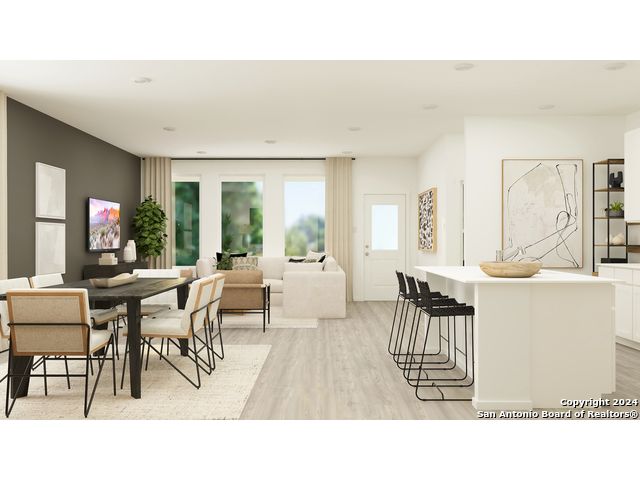 The Navarre- This new single-level home boasts a modern and low-maintenance design. Three secondary bedrooms are located off the foyer, with a nearby study perfect for focusing on important tasks throughout the week. An inviting open-concept living area combines the kitchen, living and dining areas, with a nearby covered patio ready for outdoor entertainment and leisure. A lavish owner's suite completes the home, offering direct access to an en-suite bathroom and generous walk-in closet. Prices and features may vary and are subject to change. Photos are for illustrative purposes only.