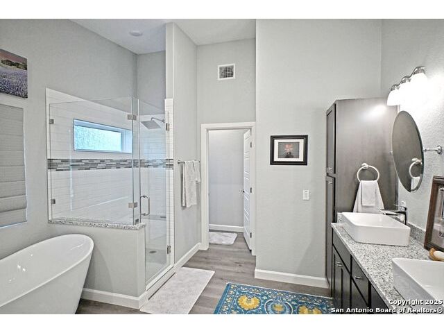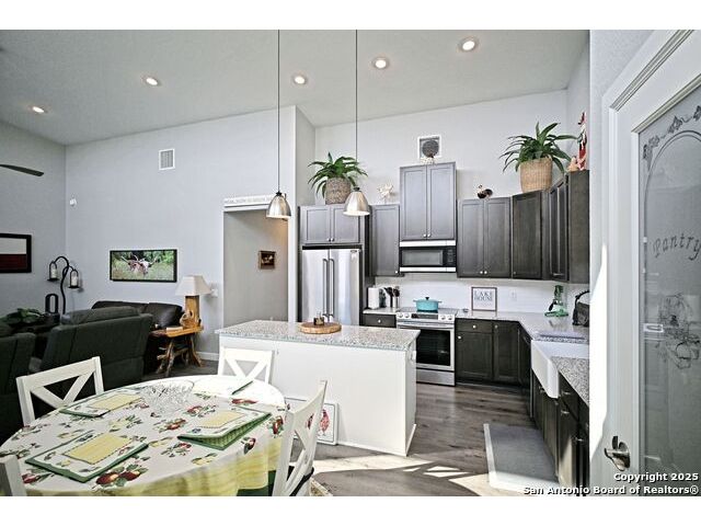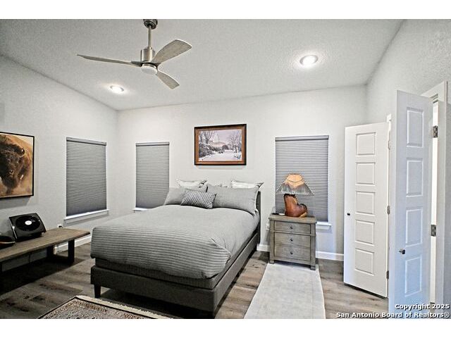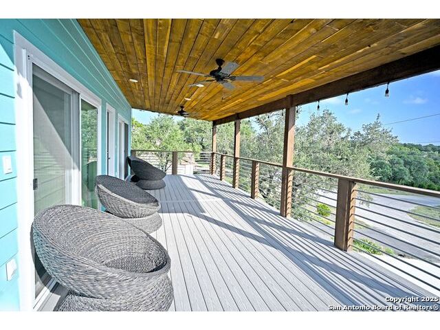 Welcome to 143 Mountainview Drive, a beautifully designed two-story home nestled in the desirable Canyon Lake Forest community. Built in 2019, this 3-bedroom, 3-bathroom residence offers 1,830 square feet of thoughtfully laid-out living space on a 0.21-acre lot. Step inside to an open-concept layout featuring a modern kitchen with granite countertops, stainless steel appliances, a large center island, and durable vinyl flooring that extends throughout much of the home. The upstairs living area is filled with natural light and showcases stunning panoramic views of the Hill Country, creating an inviting space for both relaxing and entertaining. The spacious primary suite is also located on the upper level and includes dual walk-in closets, a luxurious en suite bathroom with a separate soaking tub, walk-in shower, and dual vanities. Downstairs, you'll find a private guest or mother-in-law suite with its own entrance, bathroom, and dedicated HVAC system - ideal for visitors, extended family, or short-term rental potential. Outside, enjoy a fully fenced backyard, a metal roof for long-term durability, a one-car garage with an additional carport, and an owned water softener system. Located just minutes from Canyon Lake, this home is part of a well-maintained neighborhood with low HOA fees and access to amenities such as a pool, clubhouse, basketball court, parks, and boat ramps. Zoned to Comal ISD, with Startzville Elementary, Mountain Valley Middle, and Canyon Lake High School nearby, this home offers both comfort and convenience in a serene, nature-filled setting. Whether you're looking for a primary residence, vacation getaway, or income-producing property, 143 Mountainview Drive is a rare find with tremendous value and versatility.