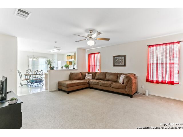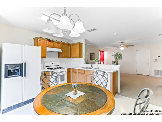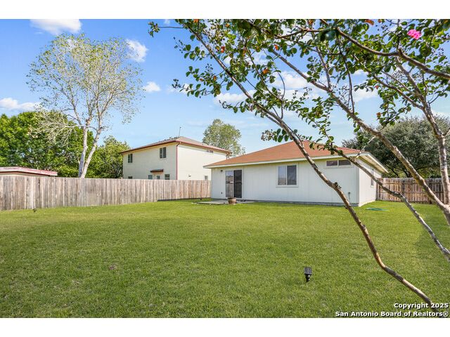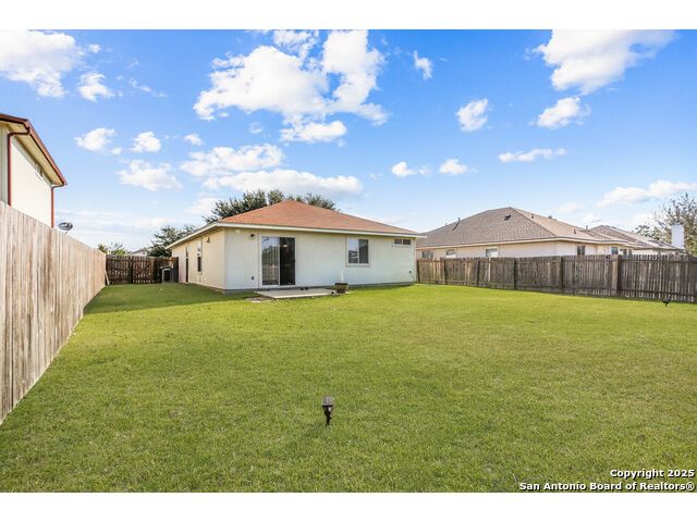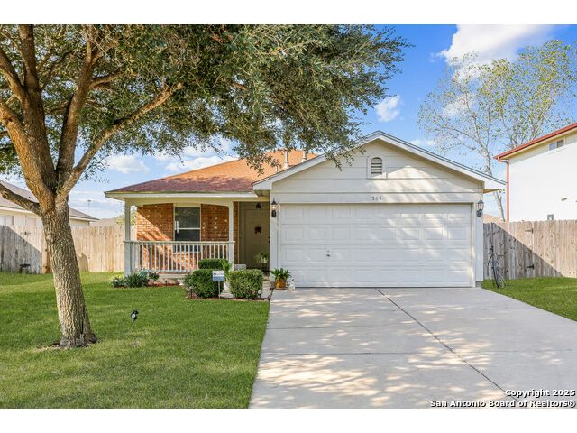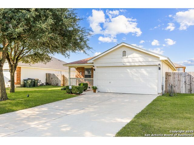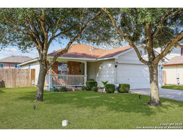 Welcome to a charming 3-bedroom, 2-bathroom home that combines comfort, convenience, and community. From the moment you arrive, you'll notice the inviting curb appeal with a shaded front yard and covered porch, perfect for enjoying quiet mornings or evening sunsets. Step inside to a bright entryway that opens into the spacious living area. The open floor plan connects the living room, dining area, and kitchen, creating a natural flow for entertaining and everyday living. The living room features large windows that bring in plenty of natural light, while the kitchen offers classic wood cabinetry, white appliances, a gas range, and a roomy dining space with direct access to the backyard-making indoor-outdoor living simple. The primary suite is a comfortable retreat with a private en-suite bath and walk-in closet. Two additional bedrooms and a full bath provide flexibility for family, guests, or a home office. Enjoy the expansive backyard with room to garden, play, or host weekend cookouts-fully fenced for privacy and ready for your personal touch. This home is located in a welcoming community just minutes from local schools, shopping, and dining. With quick access to I-35, commuting is a breeze-only a short drive to Austin and within easy reach of San Antonio. Don't miss this opportunity to own a move-in ready home in one of Kyle's most desirable neighborhoods.