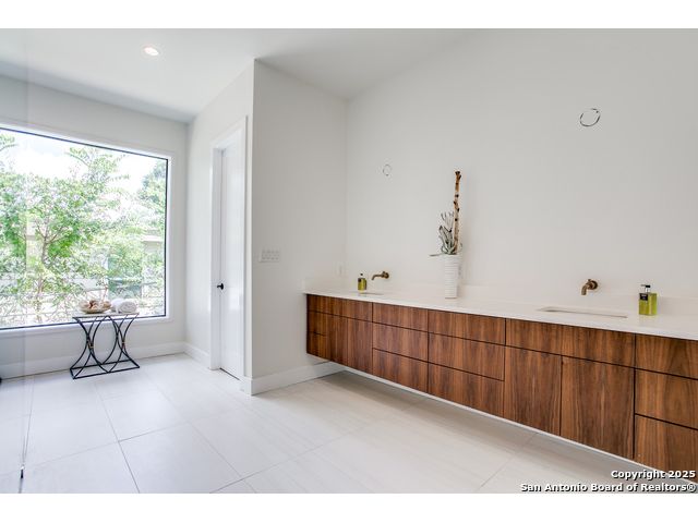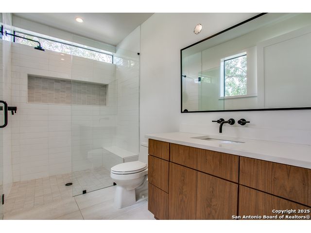 Experience redefined luxury in this stunning California contemporary nestled in the heart of Terrell Hills. Designed with clean lines and resort-style living in mind, this modern bungalow offers an effortless blend of comfort and sophistication. Step inside to soaring, light-filled spaces ideal for both intimate family moments and stylish entertaining. The chef's kitchen, complete with top-of-the-line appliances and seamless access to the outdoors, will delight both the culinary enthusiast and the consummate host. The first-floor primary suite is a true retreat, featuring a spa-like bath with an oversized glass-enclosed shower, freestanding vessel tub, dual quartz vanities, and a massive walk-in closet. A private guest suite with full bath completes the main level. Upstairs, two additional bedrooms each feature en-suite baths, alongside a spacious game/media room for gatherings. Thoughtful touches include utility rooms on both levels and an attached two-car garage, adding convenience to everyday living. Pool design and proposal available!