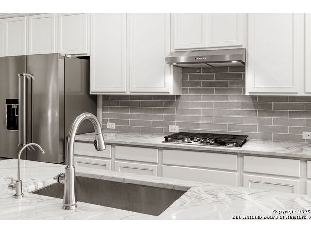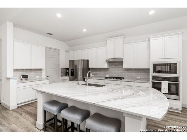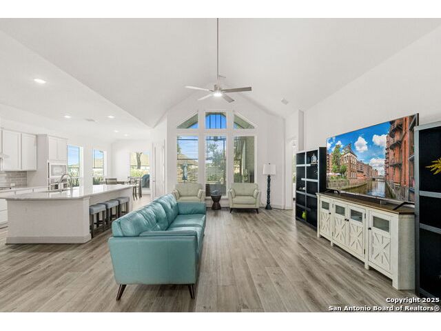 Everyday staycation living awaits in Boerne's highly sought-after Esperanza community with this rare 2023 Chesmar Home. One of the few chances in the neighborhood to enjoy the luxury of your own private pool. This is the one! Architecturally striking with soaring vaulted ceilings and an open-concept design, this single-story residence blends the feel of a brand-new build with the added rarity of a backyard retreat. Still under the builder's structural warranty, it offers peace of mind and true move-in ready comfort in one of the Hill Country's most desirable communities. Ideally located less than 2 miles from SH-46, 5 miles from IH-10, and just 30 minutes from downtown San Antonio, it balances small-town charm with big-city access. Inside, the thoughtfully designed floor plan includes four spacious bedrooms, three full baths, and a dedicated study. The vaulted family room flows seamlessly into the chef's kitchen, where upgraded granite countertops, a built-in gas cooktop, stainless steel appliances, and the breakfast nook create an inviting hub for daily living and entertaining. The primary suite overlooks the pool, with a spa-like bath featuring a walk-in shower, soaking tub, dual granite vanities, and a walk-in closet. Vaulted ceilings extend to the screened covered patio with a ceiling fan, opening to the sparkling pool that serves as the home's showpiece. This resort-style feature boasts a modern design with underwater lighting, dual fountains, and a shallow sun shelf with in-water loungers and an umbrella for relaxing on warm Texas days. A backdrop of mature oaks, lush landscaping, and planters enhances the private setting, framed by wrought-iron fencing on the sides and a solid stone wall at the rear for both openness and seclusion. Upgrades completed after purchase include luxury vinyl plank flooring in all bedrooms and closets, a water softener, screened patio, Gary Pools in-ground pool, gutters, exterior LED lighting with track system, expanded landscaping with sage plants for privacy, and a full irrigation system. Energy efficiency is built in with a 16+ SEER AC system, radiant barrier, low-E double-pane windows, Energy Star appliances, and ceiling fans throughout. Life in Esperanza offers more than a home; it's a lifestyle. Enjoy low HOA fees and access to premier amenities, including a vibrant community centered around connection, wellness, and lifestyle amenities. At the heart of the neighborhood is The Club, featuring resort-style pools, a lazy river, and event spaces where you gather for celebrations, fitness, and relaxation. Enjoy an active lifestyle with volleyball courts, fire pits, jogging and hiking trails, and a wide variety of organized activities for all ages, from Mommy & Me teas and children's story-time to fitness classes like Pilates, walking groups, and strength training sessions. Seasonal events such as pool parties, food truck nights, snow cone socials, and community garage sales. Available resources like local babysitter listings, HOA tips, even complimentary memberships to the Cibolo Center for Conservation for new homeowners, and more. With no city taxes, long-term savings further enhance the value of this community. Conveniently close shops and dining in historic downtown Boerne. Within a short drive, enjoy upscale destinations such as La Cantera, The Rim, and nearby Hill Country attractions, including wineries in Fredericksburg, Cibolo Center for Conservation, and Cascade Caverns. The location also provides easy access to military installations, including Joint Base Camp Bullis and Fort Sam Houston. Part of the highly acclaimed Boerne ISD, known for its top-rated schools and strong academic and extracurricular programs. With its rare private pool, unbeatable location, and unmatched community amenities, this home is a true standout, offering a unique opportunity to feel like a permanent vacation.