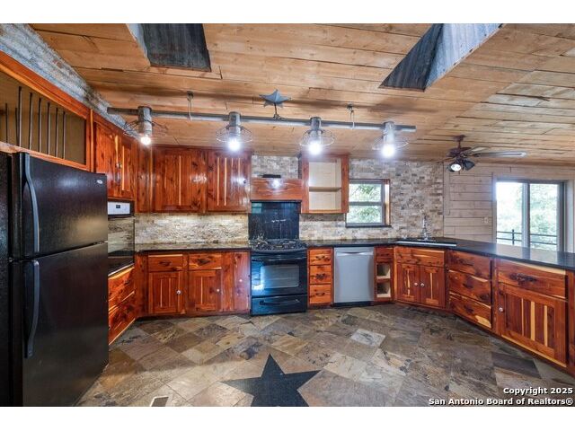 This charming 4 bedroom 2 1/2 Bath home spans over 3 acres and sits on a hill with two decks, a barn and outdoor cabana with gorgeous views of the night sky and Plenty of room for large gatherings. The home features two living spaces, a dining room and a Kitchen with granite counter tops, custom cabinets and custom lighting. The Barn / Shop has 2400sf and a 220 3 phase electrical converter and water.