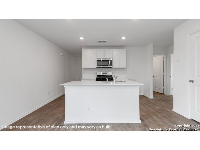 MOVE IN READY. NAVARRO ISD. Check out the Barton, one of our one-story floorplans available at Swenson Heights in Seguin, Texas. This 3 bedroom, 2 bathroom home includes a 2-car garage all within 1,280 square feet of comfortable living space. Our homes in Swenson Heights feature our modern farmhouse exteriors. As you enter the home from the front porch, you'll be in the foyer, which includes the utility room and hall closet. Moving further into the home, you'll find the kitchen, dining and family room. Built as an open concept living space, you're sure to make many memories here. The kitchen features an island with a stainless-steel sink, quartz countertops, 42" upper 'picture frame' cabinets, a pantry closet, and stainless-steel appliances. The secondary bedrooms and bathroom are located off the kitchen. The bedrooms include carpet and closets with wood shelving. The secondary bathroom has a shower/tub combination and a cultured marble vanity with trench sink. The primary bedroom is tucked away at the back of the home and includes an attached bathroom. Start your mornings off right in this private space, which includes a walk-in shower, cultured marble vanity with trench sink and a walk-in closet. This home features our America's Smart Home base package, which includes the Video Front Doorbell, Front Door Deadbolt Lock, Home Hub, Thermostat, and Deako Smart Switches.