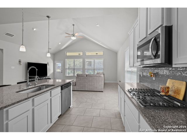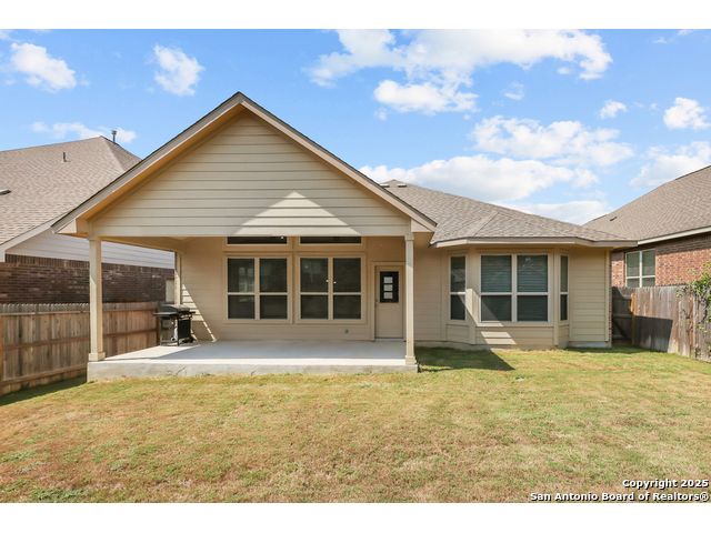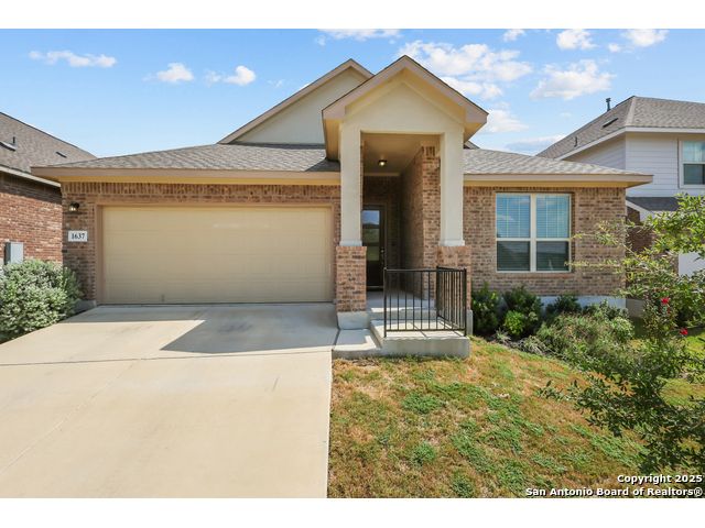 Welcome to 1637 Cullanne in Bulverde, TX, a beautifully designed 3-bedroom, 2.5-bath home offering 1,902 square feet of inviting living space. Two spacious bedrooms greet you at the front of the home, creating a private retreat for family or guests. The heart of the home is the open-concept living room and kitchen, filled with natural light from expansive windows. The kitchen features granite countertops, a central island, and stainless steel appliances, perfect for everyday meals and entertaining. The large primary suite provides comfort and style, complete with a luxurious ensuite that includes a soaking tub, separate shower, and dual vanities. Step outside to enjoy a covered back porch overlooking the backyard, an ideal space for outdoor dining or relaxing. Located in a welcoming community, residents enjoy access to a pool, clubhouse, jogging trails, and a sports court. Nestled in Bulverde, this home combines modern convenience with scenic charm while keeping you close to San Antonio shopping, dining, and top-rated Comal ISD schools.