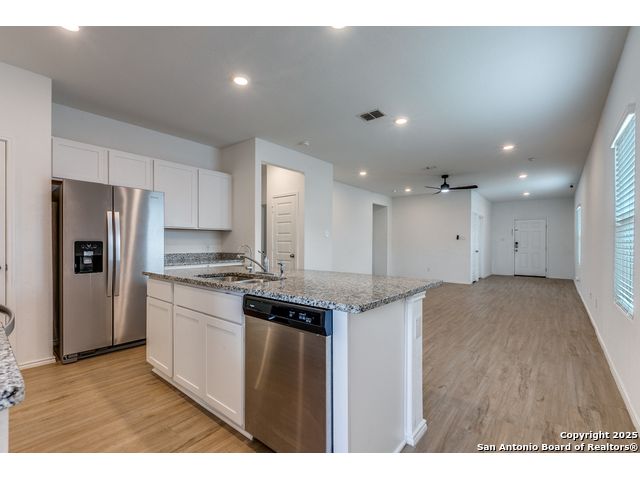 Welcome to this charming 4-bedroom, 2-bathroom home on a desirable corner lot in the growing southwest side of San Antonio. Built in 2022, this residence offers 1,601 sq. ft. of modern living with an open layout that blends comfort and functionality. Its prime location places you just 8 minutes from Lackland Air Force Base, with quick access to Loop 410 for an easy commute around the city. Major shopping, dining, and entertainment are less than 10 minutes away, while Palo Alto College and Texas A&M University-San Antonio are also nearby. With a blend of style, convenience, and accessibility, this home is perfectly situated for today's lifestyle.