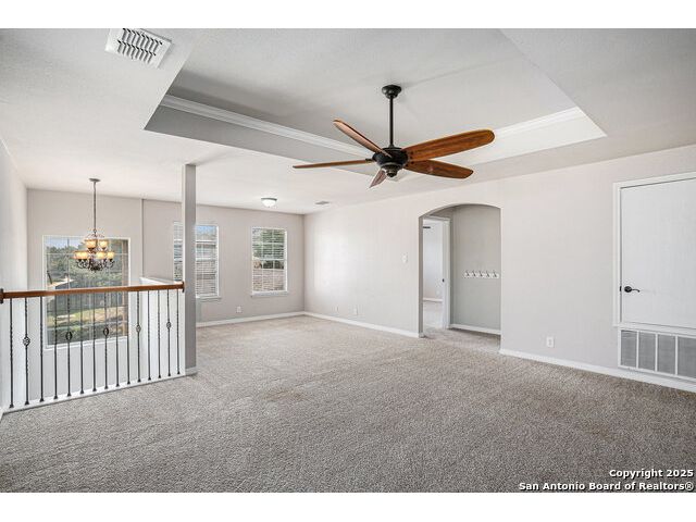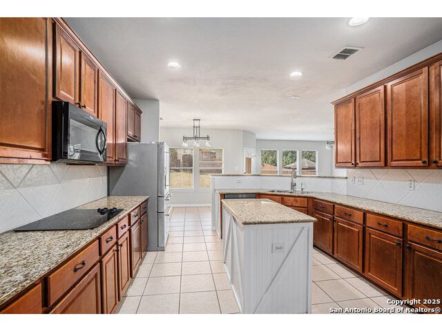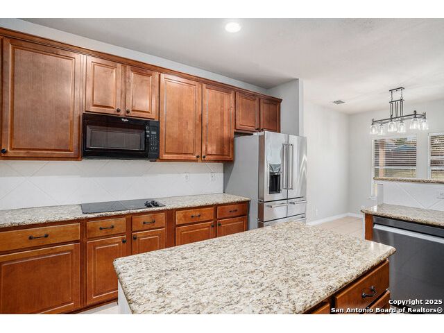Welcome Home to Bulverde Village! Step into this bright, move-in ready two-story home offering 5 spacious bedrooms, a large upstairs game room, a dedicated home office, and a true formal dining room-a layout designed for both everyday comfort and effortless entertaining. The kitchen serves as the home's central gathering space, featuring granite countertops, built-in appliances, and abundant 42" cabinetry, all opening seamlessly to the living area with its warm wood flooring, tall ceilings, and cozy fireplace. The main-floor primary suite is a peaceful retreat boasting a pop-up ceiling, crown molding, and a spa-like ensuite with dual vanities, a garden tub, a separate shower, linen storage, and a generous walk-in closet. Upstairs, the game room provides extra living flexibility, and the junior suite-with its own private bath and walk-in closet-is perfect for guests, multigenerational living, or an older child wanting more privacy. All secondary bedrooms offer great size and walk-in closets. Thoughtful updates and conveniences include: * NEW AC (September 2025) * Water softener * Oversized laundry room * Partially planked and lighted attic for added storage Step outside to a covered patio overlooking a spacious, privacy-fenced backyard-ideal for relaxing, grilling, or hosting weekend gatherings. Located less than 4 miles to H-E-B, shopping, dining, parks, and Hwy 281, this home delivers the perfect blend of comfort, space, and convenience. A fantastic opportunity in one of the area's most desirable communities!