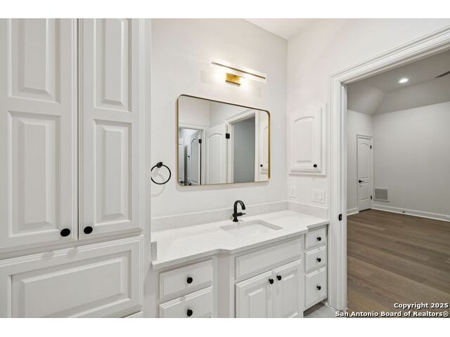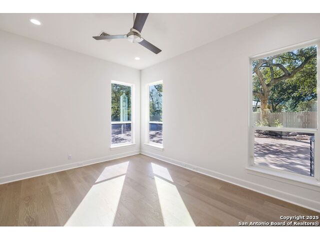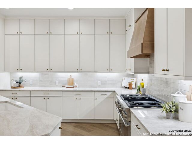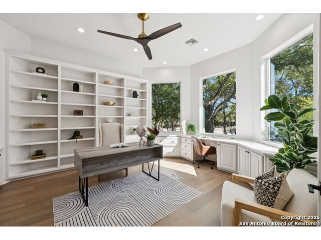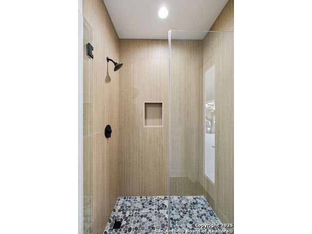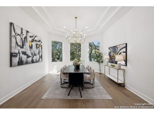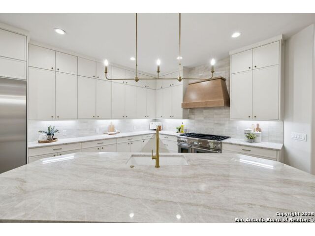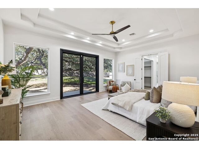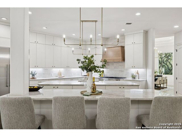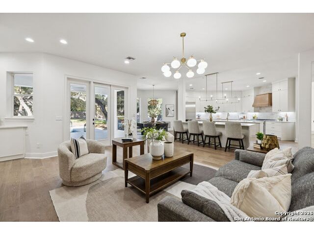 Set on a generous Shavano Park lot, this reimagined estate lives like a private modern compound. Clean lines, warm surfaces, and wide windows create an almost gallery-like calm, the kind of quiet luxury you notice before you name it. Inside, the scale becomes unmistakable. More than 6700 square feet of expansive living unfold through tall ceilings, expansive living areas, and a crisp palette that keeps every room feeling bright and composed. The renovation touches everything. Fixtures, finishes, and lighting move with a consistent elevated language. The kitchen sits at the center of the plan and reads as a true showpiece with sweeping Taj Mahal quartzite, Thermador appliances, and generous proportions that support both daily living and larger gatherings. Private spaces carry the same refined tone. The primary suite enjoys its own corner of the home with a quiet sitting area and direct access to poolside bliss. Outdoors, the new pool and spa sit beneath mature oaks and connect seamlessly to the interior living spaces. The result is a serene, resortlike environment that reinforces the sense of privacy created by the nearly acre sized lot. .93 acre Bed Bath 6710 Sqft. Formal dining Private study Game room Pool + Spa 3 car oversized garage with private gated access