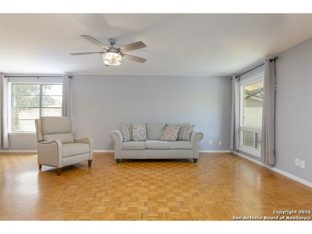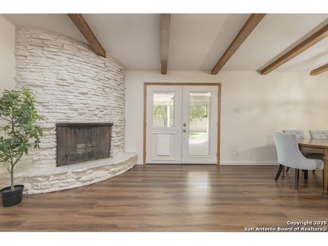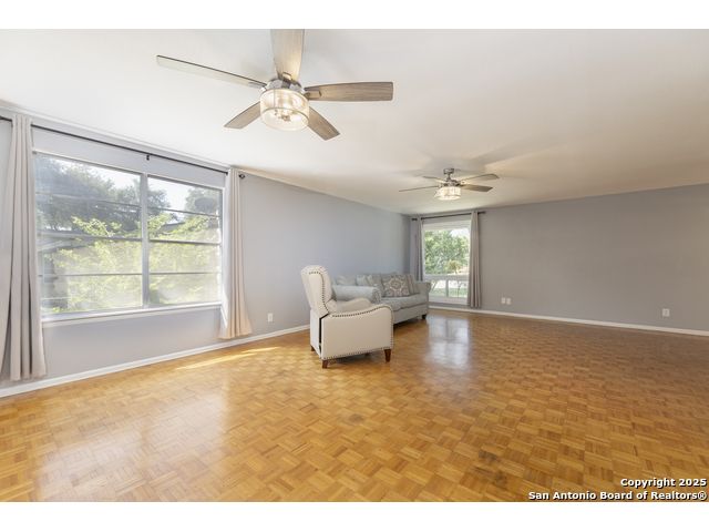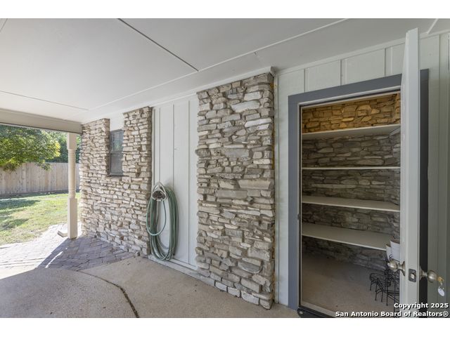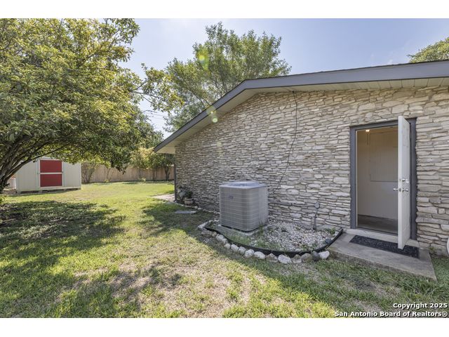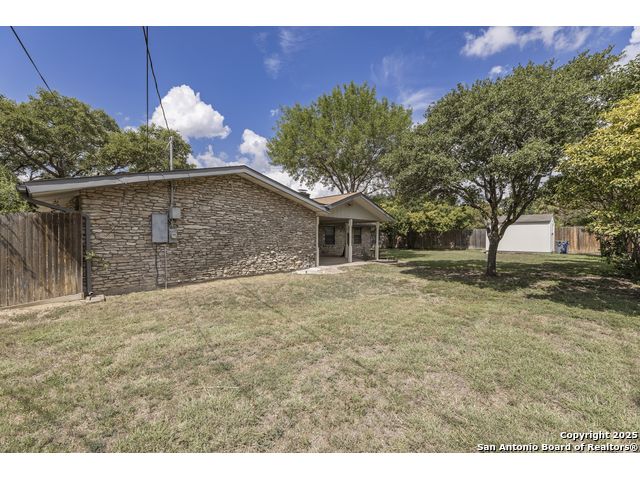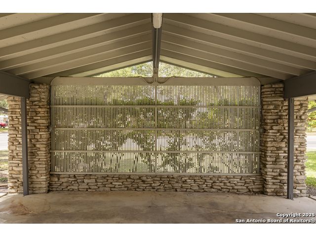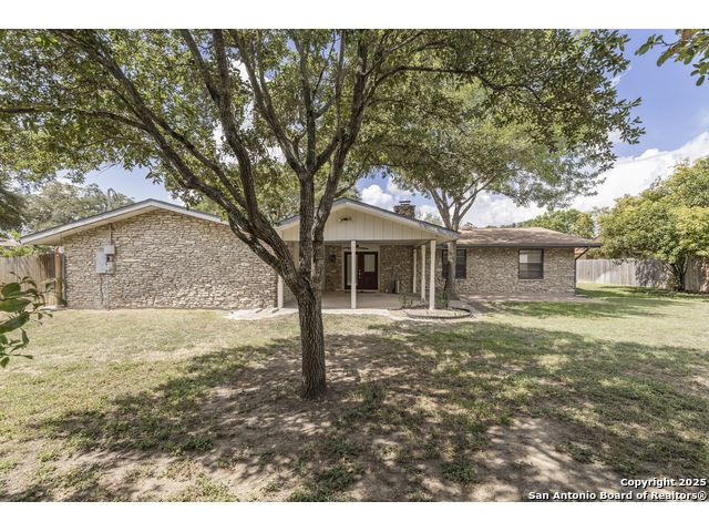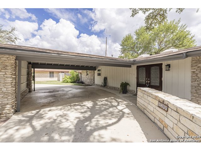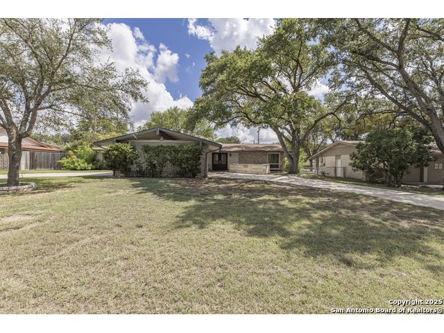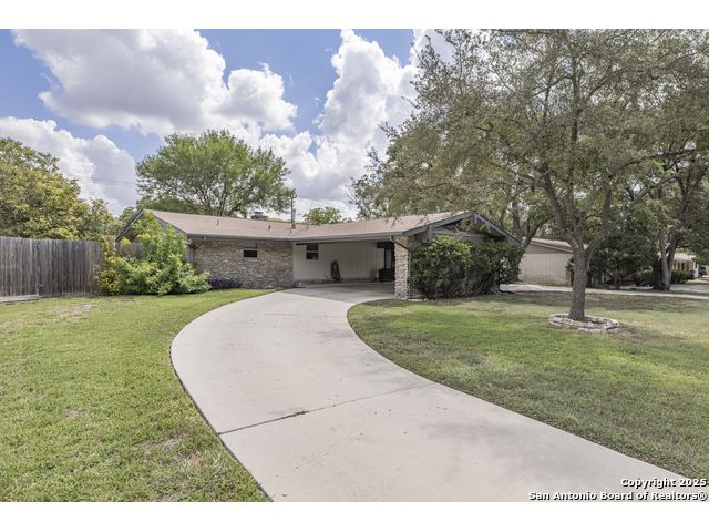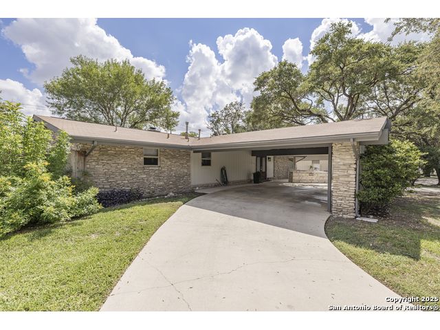 Spacious, immaculately maintained and upgraded 2400+sqft / 3bdrm, 2-bthrm residence offering new flooring and designer upgraded bathrooms. The remodel was done by the owners- not a flip house- it was done right with love and excellence over the last 7 yrs. It includes the whole house re-wiring which is an important safety concern for many older homes in Windcrest. Newer roof, HVAC, water heater- this is a clean, move in ready home! Has great ADA modifications in place for those who have mobility concerns. Just down the street from the elementary school in the highly sought-after Windcrest subdivision. Home sits on a generous .344-acre lot with great trees and combines timeless design with unique character. Low maintenance stone exterior and circular driveway are framed by mature trees create a welcoming first impression. A 3-car portico provides plenty of parking and convenience plus a new shed in back yard for additional storage and 2 additional outdoor accessed storage closets make this house incredibly functional. The covered patio out back is plumbed with gas for outdoor grill and perfect for hosting gatherings or simply enjoying the tranquil, shaded yard. The spacious living room with vaulted ceiling features a curved front gas plumbed fireplace as its centerpiece, enhanced by charming wood beams that extend into the kitchen, creates a cohesive Mid-Century Modern appeal. The kitchen is designed with both function and comfort in mind, offering ample space for preparing meals while staying connected to the heart of the home. Each bedroom offers generous proportions, with natural light filtering through the many windows. The expansive level lot provides plenty of room for play, gardening, or entertaining, making it a true retreat within the city. Windcrest is a community known for its beautiful tree-lined streets, parks, and a welcoming neighborhood atmosphere, this home offers not just a place to live, but a lifestyle. With easy access to shopping, dining, and major highways, convenience is always close by while still enjoying the peace and charm of an established neighborhood. Don't miss the opportunity to make this timeless property your own - schedule a same day private showing today!