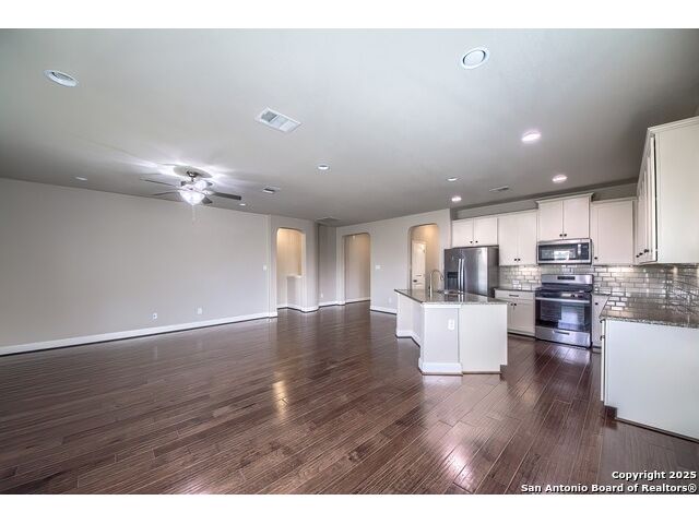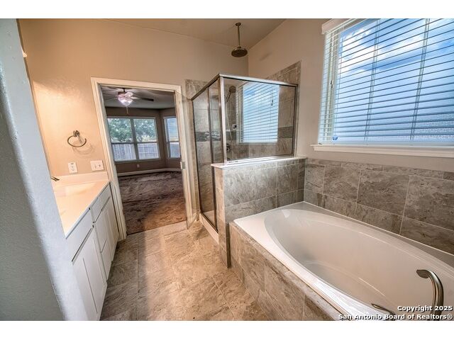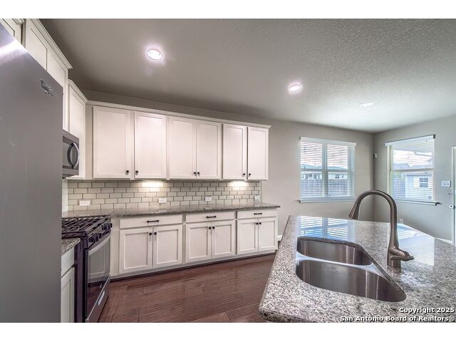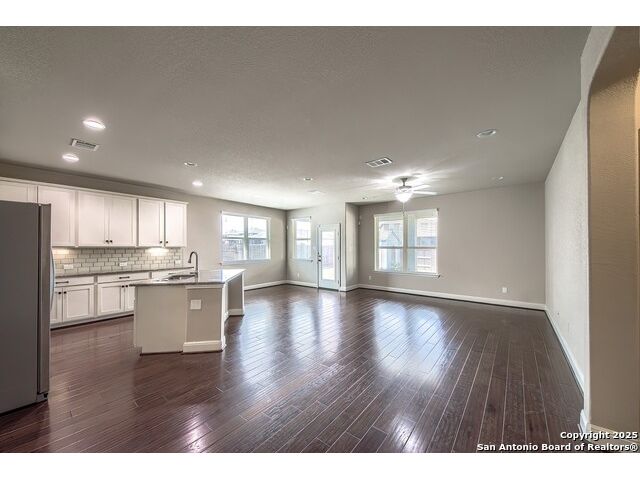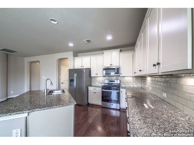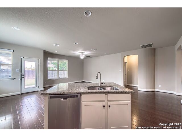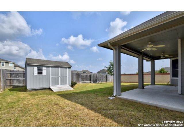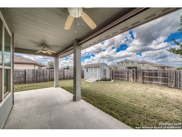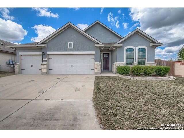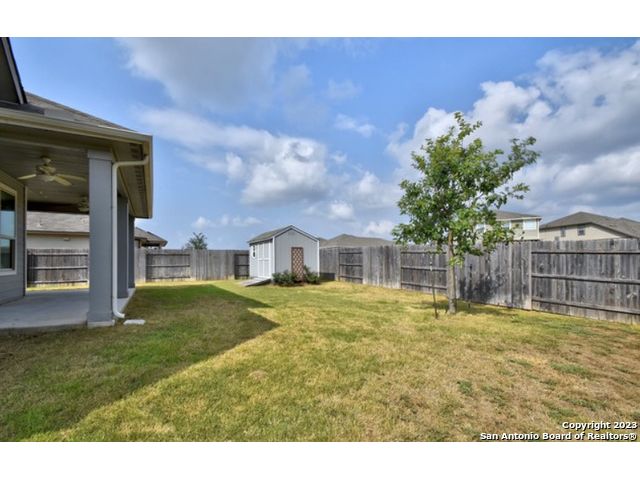 Absolutely beautiful 1 story corner lot with custom tool shed!! Large fenced yard, trees, sprinkler system, covered patio, gutters and side concrete wall for privacy. Love the open floor plan with windows galore!! What a pleasure to show, owner transferred. Spacious single story home in Talise De Culebra is ready for new owners! This impeccably crafted home is sure to impress. This home has all the bells and whistles. A 3 car garage, water softener, wood floors, high ceilings, and a beautiful island kitchen featuring crisp white cabinets, granite countertops, and stainless steel appliances.