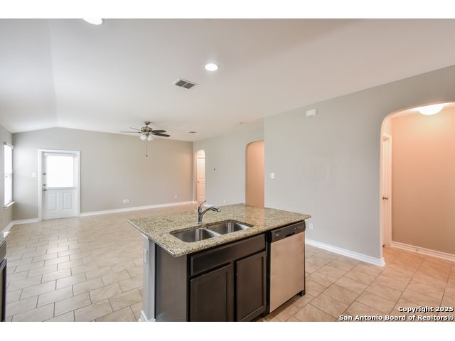Welcome to this well-maintained home featuring 3 bedrooms, 2 bathrooms, and 1,651 sq. ft. of thoughtfully designed living space. Located in the desirable Riposa Vita community, this property offers easy access to Loop 410 and US-87, making commuting a breeze. As you enter, you're greeted by a flexible formal dining room to the left, which can easily be converted into a home office or study. The heart of the home is the open-concept kitchen and spacious family room, perfect for both daily living and entertaining guests. The primary suite is privately tucked away at the back of the home and boasts a large en-suite bathroom with dual vanities and a generous walk-in closet. Two additional bedrooms and a full bath provide plenty of space for family or guests. Step outside to a spacious covered patio, ideal for enjoying morning coffee or hosting weekend gatherings. The backyard offers ample room for pets, play, or gardening. This home combines comfort, convenience, and functionality-making it a must-see opportunity in San Antonio!