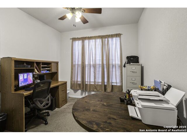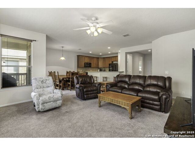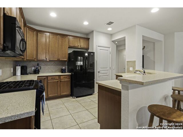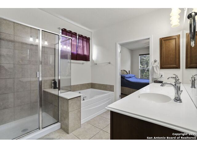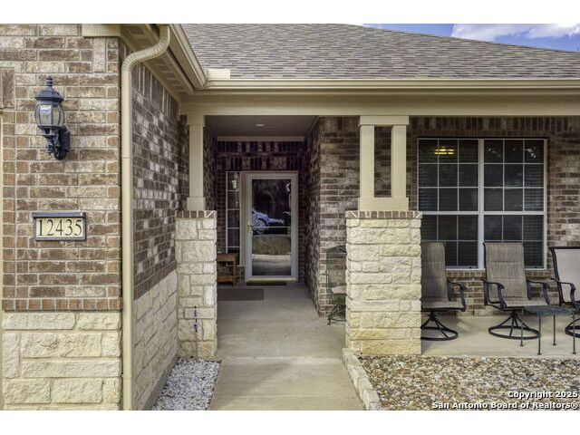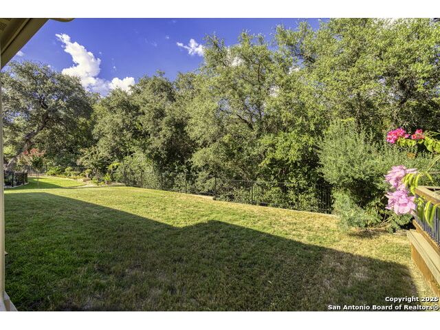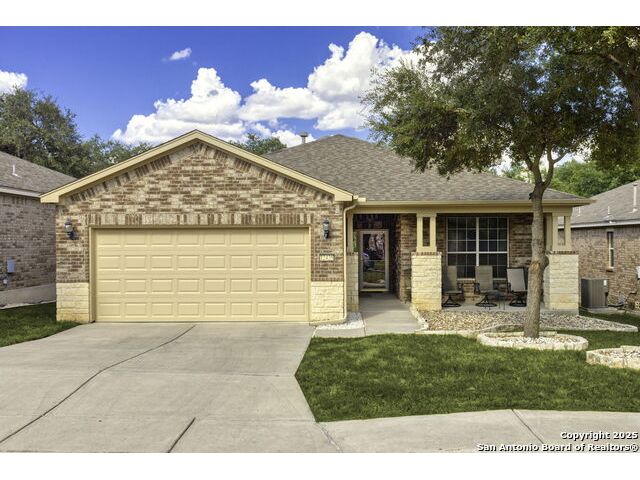 Reduced $10,000! Situated in the remarkable Hill Country Retreat community, this charming home backs to a greenbelt for privacy! The pleasant front porch beckons you inside the 100% brick & stone residence, to experience bright open living spaces. The kitchen features abundant cabinetry, gas cooktop, and Corian-style counters w/integrated sink for easy cleaning. Enjoy a spacious master retreat w/expansive windows & luxury bath affording a double vanity, 2 sinks, separate soaking tub & walk-in shower, and a generous closet! The second bedroom is also roomy, plus a study/office offers a great spot for hobbies & work alike. Don't miss the laundry room w/sink! Enjoy the covered back patio as you overlook the lawn w/irrigation system and appreciate natural views of the greenbelt. Discover the incredible amenities of this Resort Style 55+ neighborhood, including pickleball & tennis courts, Bocce ball, fitness center, indoor & outdoor pools, trails, clubs, and a library, all located within a peaceful community that affords convenient access to fine shopping, dining, and other San Antonio attractions!
