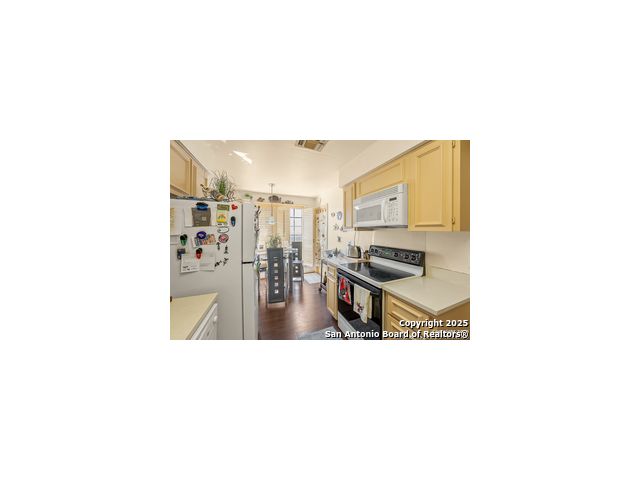 Now offering 5k Seller Concessions for flex cash to buy down rate or closing costs! ...The moment you walk in, you'll feel right at home! This well laid out design offers versatile furniture arrangement with a bank of windows overlooking your roomy patio balcony with an access point off the breakfast room/ eat-in kitchen, and another off the living area. Owner added a NEW REFRIGERATOR and A/C unit is only about two years old! Recent UPGRADED QUARTZ kitchen counters were added providing a modern finish, as well as GRANITE counters in the creatively designed bathroom serving as a full ensuite to the primary room, and a guest half bath, but allowing access to the walk-in tile shower. The PLANTATION SHUTTERS throughout control your ambiance anywhere from natural bright light to dim & cozy. The gorgeous floors provide a warm & neutral compliment to each room which all feel generous in size with Walk in Closets. A laundry closet with storage is right on your patio deck housing the stacked w/d unit. This is PRICED WELL at about 10k BELOW appraised value and included with the HOA is a generous size pool area as well as some utility expenses. It's hard to beat the convenience of this central location near shopping, easy access to downtown, the airport, near 410 North and 281. At this price, the property makes an excellent low maintenance home for downsizing, first time home buyers, or a home away from home. Or if you'd like to keep it as an investment property, the tenant is happy to continue in a lease. Come check out this amazing opportunity!