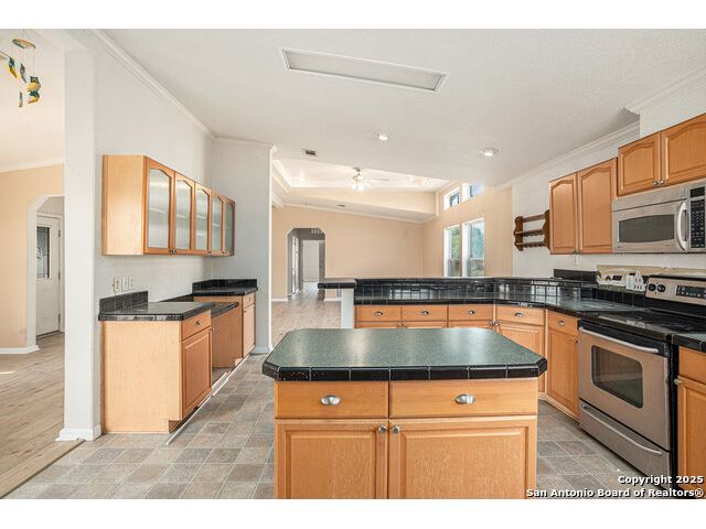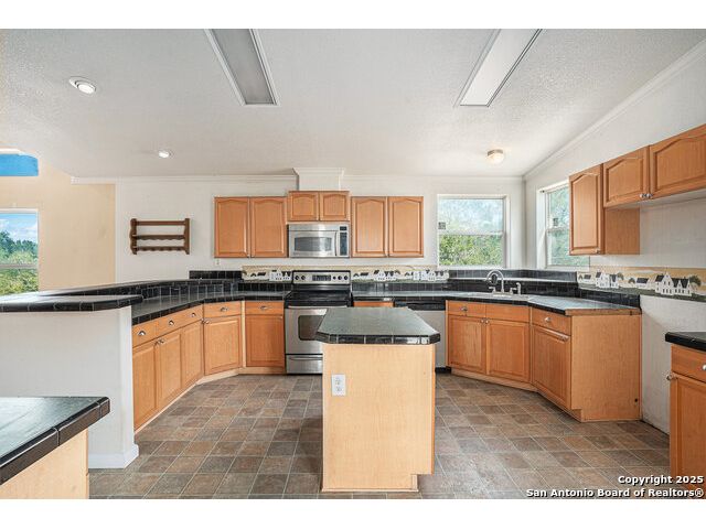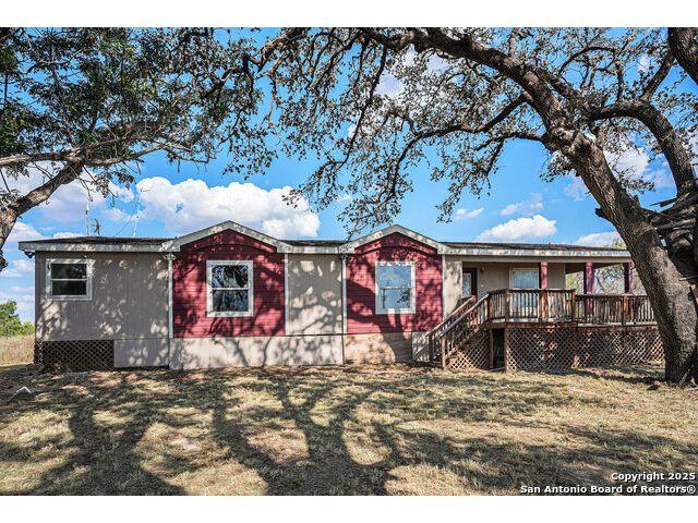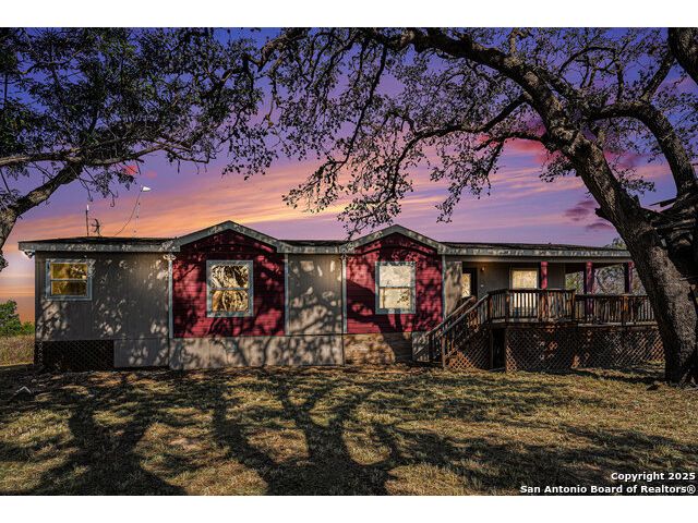 Price Improvement! Nestled among mature trees, this beautifully maintained home offers a perfect blend of peaceful country living and convenient city access-just 40 minutes from San Antonio. Inside, you'll find abundant natural light and a seamless flow between the kitchen, dining area, and living room, creating a functional and inviting space for both everyday living and entertaining. The home features an inviting front porch and sits on 7 acres, providing plenty of room for animals, gatherings, or simply enjoying the outdoors. A rare opportunity to enjoy the charm of country living without sacrificing city convenience. Discounted rate options and no lender fee future refinancing may be available for qualified buyers of this home.