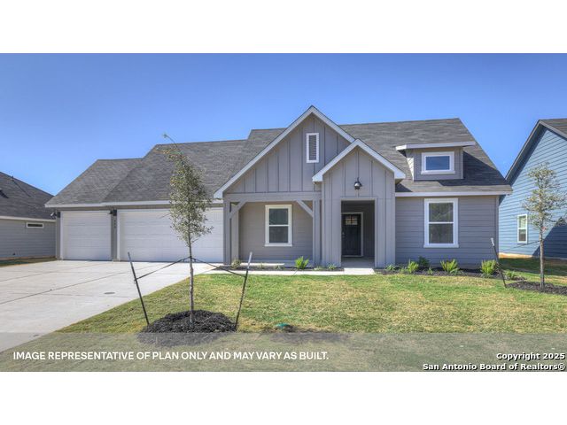JANUARY ESTIMATED COMPLETION DATE. CORNER LOT. Step into the Garland at Sonoma Oaks, a spacious one-story new home available in Fredericksburg, Texas. Designed across 2,134 square feet, this home includes 4 bedrooms and 2 bathrooms and 3 car garage. From the covered entryway, move through the foyer into the open concept living space. The kitchen, dining room and family room are at the center of the home, making your mealtime and downtime a shared experience across the open area. The kitchen features an
