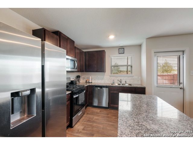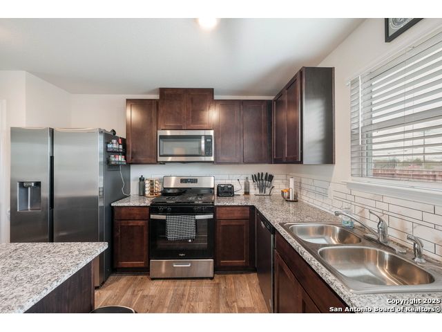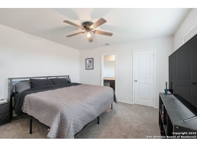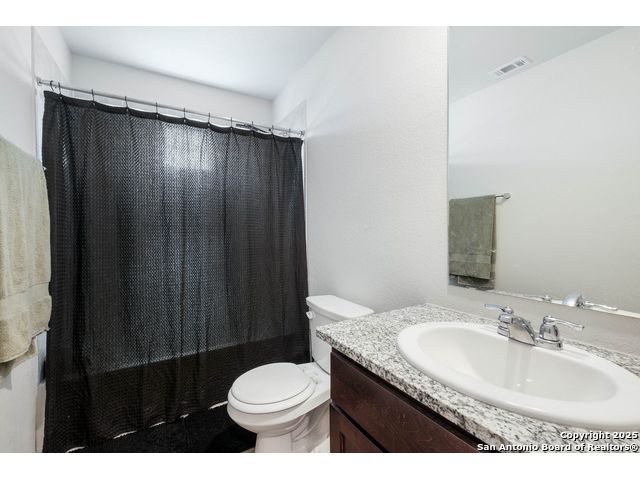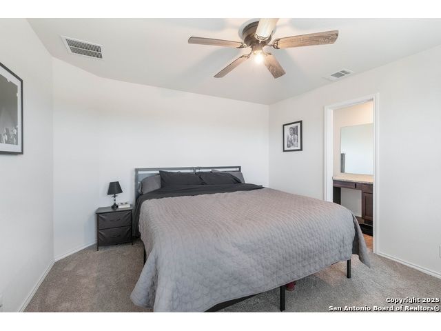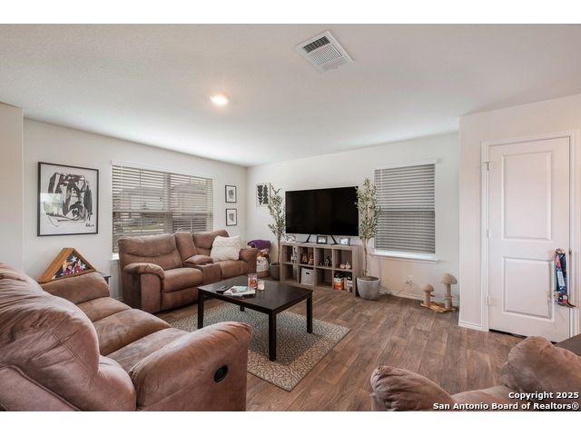 ***4.9 VA ASSUMABLE LOAN*** Welcome to The Ellington in Whisper Falls. The main floor features an open layout with a spacious living area connected to the dining room and kitchen. The kitchen includes a large island, granite countertops, and black appliances. A half bathroom and utility room with extra storage are also located on the first floor. Upstairs, the primary suite includes a full bathroom and walk-in closet. Two additional bedrooms, each with walk-in closets. Sheet-vinyl flooring is included in high-traffic and wet areas, and smart-home features allow control of lights, thermostat, and locks from a compatible device. Whisper Falls offers a variety of community amenities including a pool, splash pad, clubhouse, fitness center, basketball court, and walking trails. The home is served by Medina Valley ISD schools: Lacoste Elementary, Medina Valley Middle, and Medina Valley High. Shopping, dining, parks, and daily conveniences are available within five miles. Lackland Air Force Base is within a 30-minute drive.