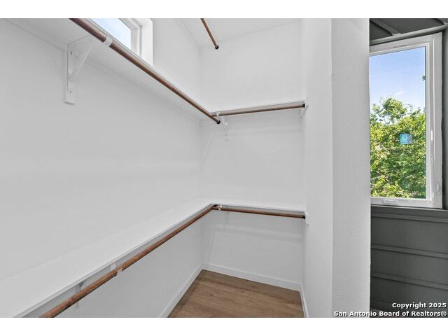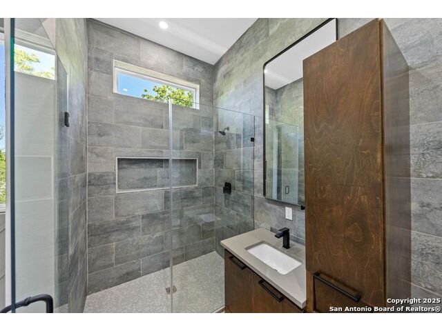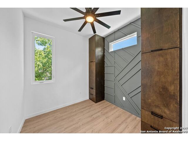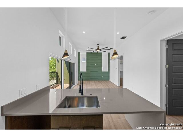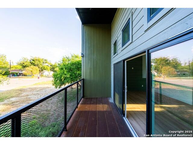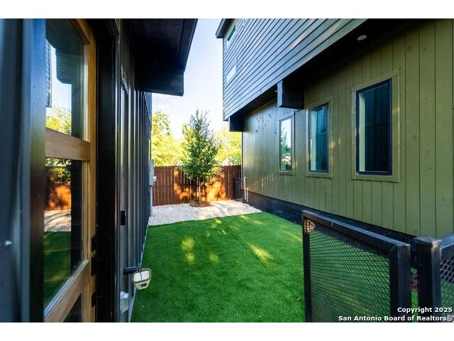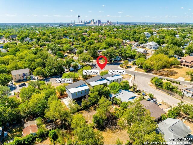 Modern living in the heart of downtown San Antonio! Welcome to Unit 102 - a thoughtfully designed 2-bedroom, 2-bath home with an office and a spacious utility room, maximizing its 1,681 square feet (including garage). The main living spaces are located on the second floor, offering elevated views, abundant natural light, and striking vaulted ceilings. The sleek kitchen boasts quartz countertops, custom cabinetry, a full decorative backsplash, stainless steel appliances, a pot filler, and a vent hood - perfect for both everyday use and entertaining. Enjoy seamless indoor-outdoor living with a metal-railed balcony accessed through oversized sliding doors. Stylish finishes throughout include modern lighting, accent walls in key rooms, and carefully curated bath designs. A low-maintenance xeriscape yard and a modern metal privacy fence elevate the outdoor appeal. The attached 2-car garage provides ample storage. A rare opportunity for sophisticated downtown living!