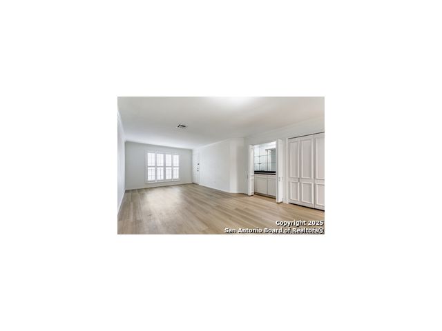 Look no further for an updated, low-maintenance condo in Alamo Heights! Fresh paint, wood-look flooring, and a bright kitchen will impress anyone wanting an easy lock-and-leave lifestyle. The combined living and dining room is generously sized and has storage space for your entertaining needs. The kitchen was recently transformed with modern cabinetry, white counters and backsplash, stainless appliances and makes a cheery spot for cooking with eat-in space and laundry closet. Spacious bedrooms and refreshed baths with on-trend cabinets and tile. Private patio and 1 covered car space.