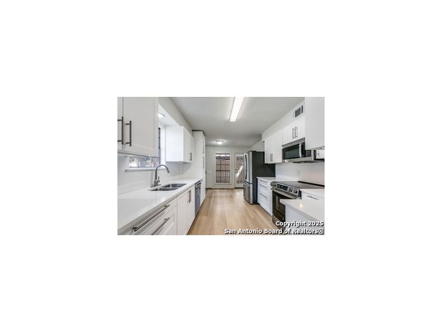 Welcome to this dreamy condo that has been transformed to appeal to today's buyer. Wood-look floors flow through the main rooms and provide a modern base for the new owner. The combined living and dining room is spacious with good storage. The kitchen will wow you, with white cabinets and countertops plus recent appliances, providing ideal workspace for the cook and includes eat-in space and laundry closet. 2 Bedrooms are well-sized, and the bathrooms boast updated cabinets and tile. Private patio with bonus storage. One car covered parking.