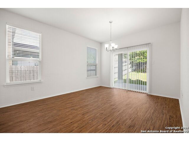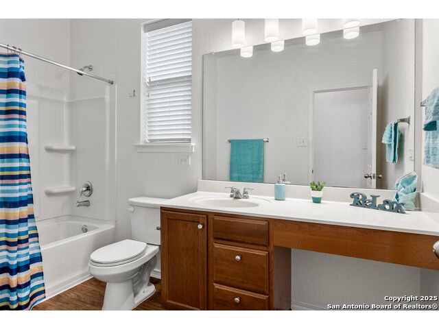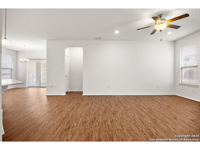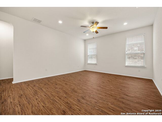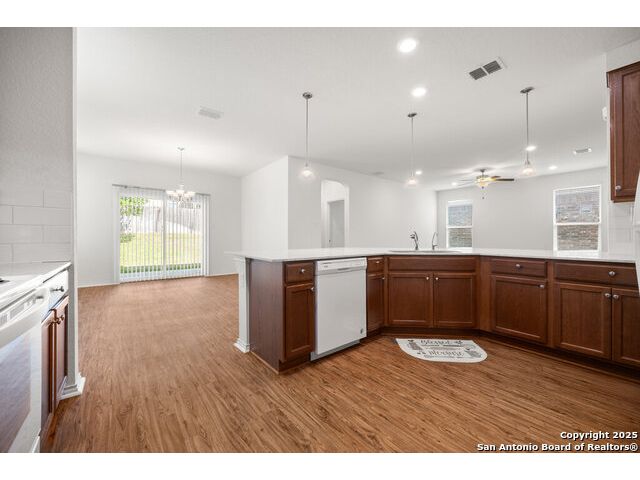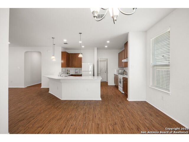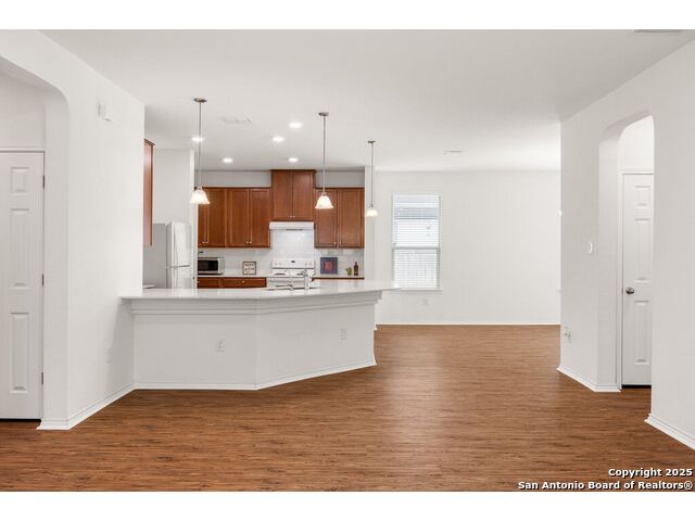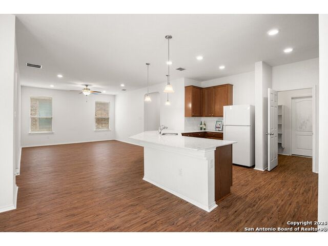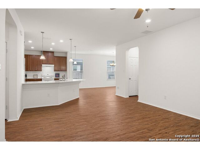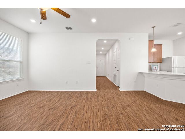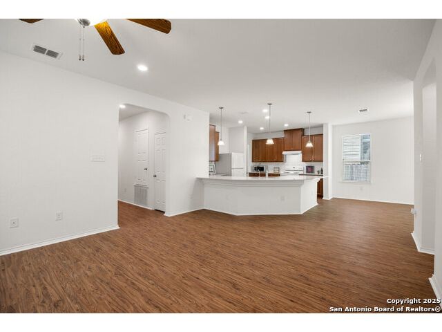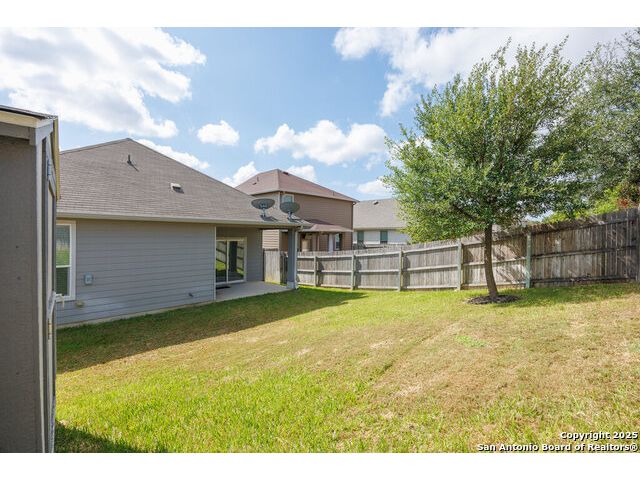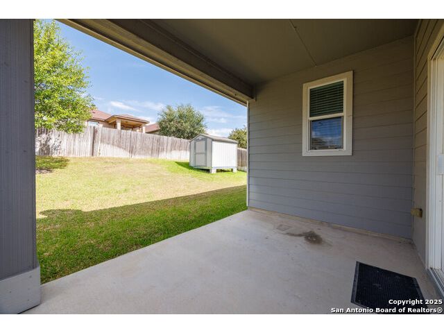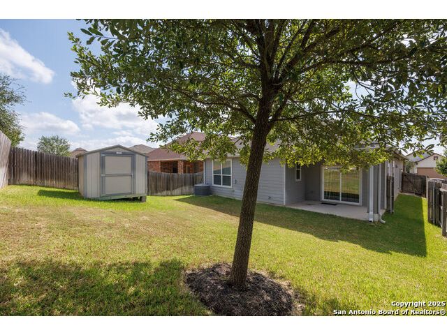Beautiful one-story home with 3 bedrooms and 2 full baths. New vinyl plank flooring installed Sept 2025. High ceilings with recessed lighting. Open floor plan allowing kitchen, dining, and living areas to flow together. Kitchen features Silestone countertops, a wrap-around bar, lots of cabinet space and a large walk-in pantry. Enjoy outdoor living on the covered porch in a privacy fenced backyard. Additional features include a new water heater installed July 2025, water softner, full sprinkler system and a storage shed. Quick commute to mutliple military bases. Easy access to IH35, shopping, food and entertainment.