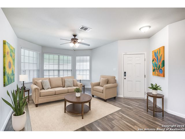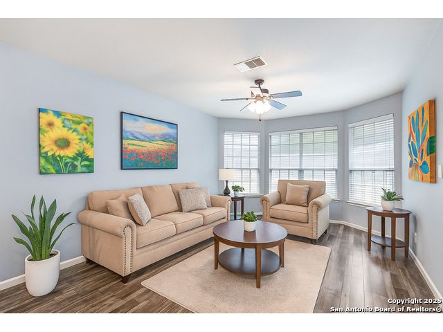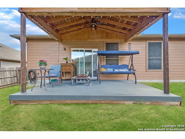 Welcome to this inviting single-story home featuring a bright and open floor plan designed for comfort and functionality with NO carpeting! A beautiful bay window fills the living area with natural light, creating a warm and welcoming atmosphere. The spacious layout offers seamless flow between the living, dining, and kitchen areas-perfect for everyday living and entertaining. Step into your private outdoor retreat-this spacious backyard features a large covered deck, perfect for relaxing in the shade or entertaining. Step into your private outdoor retreat-this spacious backyard features a large covered deck, perfect for relaxing in the shade or entertaining year-round. Whether you're hosting a barbecue, enjoying morning coffee, or watching the sunset, this versatile outdoor living space offers comfort, style, and plenty of room to unwind. Enjoy the convenience of a prime location with quick access to IH-35, Randolph Air Force Base, and Fort Sam Houston. Whether you're commuting, running errands, or exploring nearby amenities, this home puts you right where you need to be.