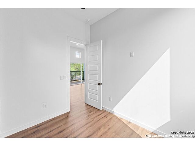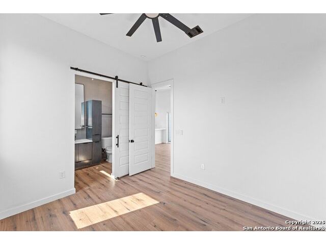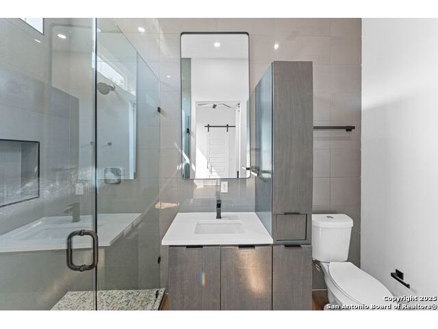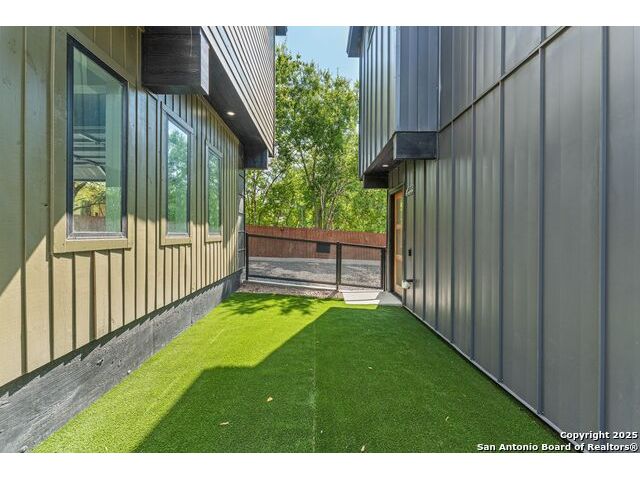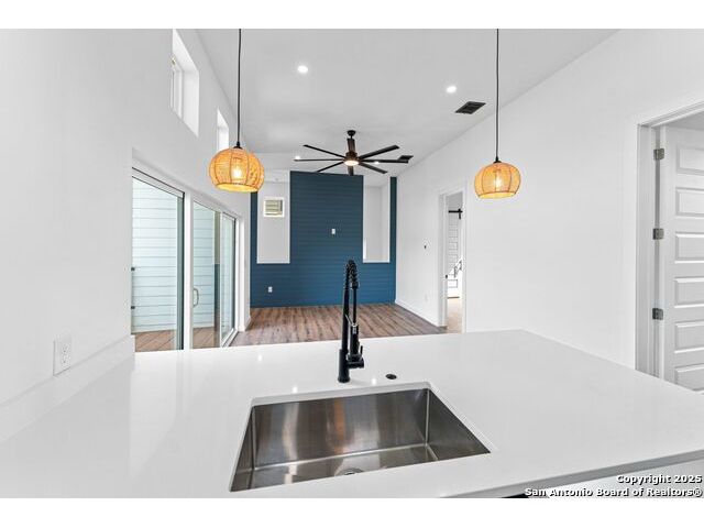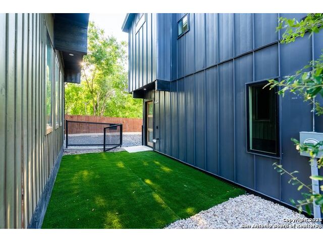 URBAN MODERN LIVING. Experience stylish downtown living in this thoughtfully designed 2 bed, 2 bath home with an office and spacious utility room. With 1,681 sq ft (including garage), Unit #103 offers an open second-floor layout that maximizes natural light and showcases city views through expansive windows. The sleek kitchen boasts quartz counters, stainless appliances, custom cabinetry, and designer touches like a pot filler and full backsplash. Vaulted ceilings, sliding glass doors, and a metal-railed balcony enhance the bright, airy vibe. Modern finishes continue throughout, from accent walls to well-appointed baths. Enjoy low-maintenance xeriscaping and a private, fenced yard. Oversized 2-car garage adds convenience and storage. A must-see in the heart of San Antonio!