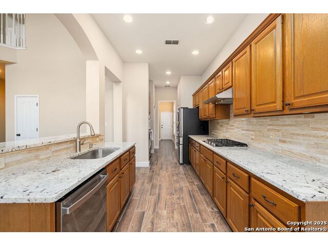 Luxury awaits within this newly updated, stunning 4-bedroom, 2.5-bathroom home! Situated in the highly sought-after North Central San Antonio area, this home features a spacious floor plan, high ceilings, granite countertops in the kitchen and bathrooms, newly tiled showers and all the finest finishes. The living space is illuminated by large picture windows that allow the natural light to flow in, as well as a beautiful fireplace. Fit for any home chef, the kitchen offers ample cabinetry, an exquisite gas stove top inlay, and a coffee bar area. The first level is ceramic tile and the second level has a beautiful engineered hardwood floor with ample space for relaxation, the primary bedroom is the ideal space to unwind, along with the spa-like en suite bathroom with a soaking garden tub. Three additional bedrooms complete this home and allow new owners to use the space as desired. Ideal for hosting outdoor events, the backyard is home to mature shaded trees and ample grassy space. Many upgrades were completed to this home, including new ac units, a water heater, a water softener, new appliances, bathrooms updated, and the home and deck repainted. Come and see all this fantastic home has to offer, and make this dream home yours today!