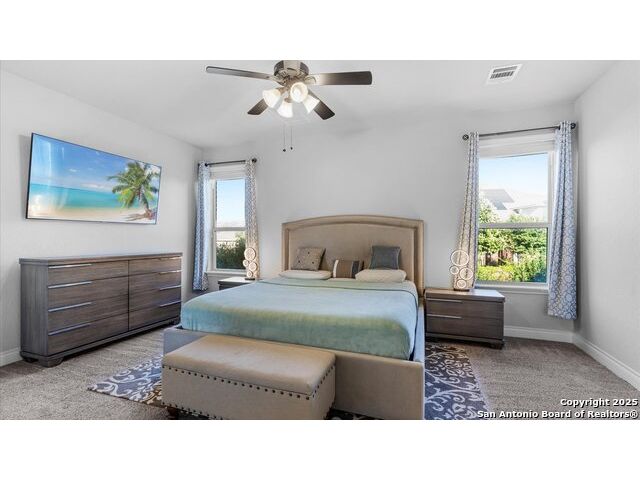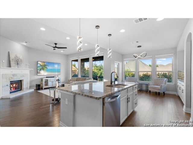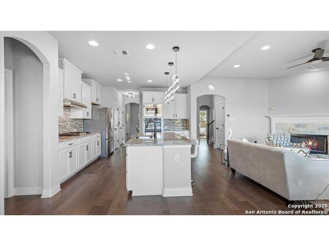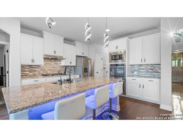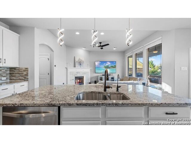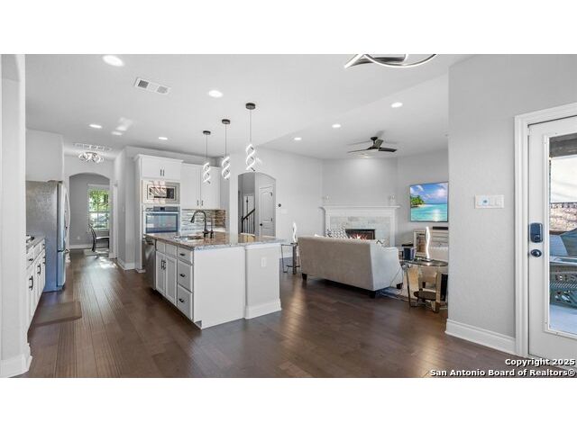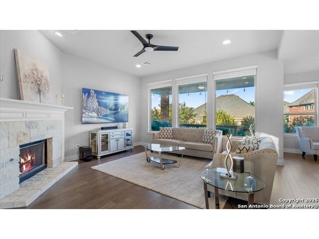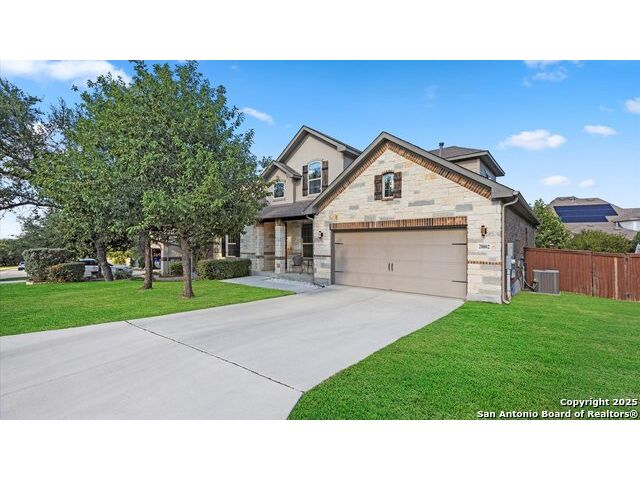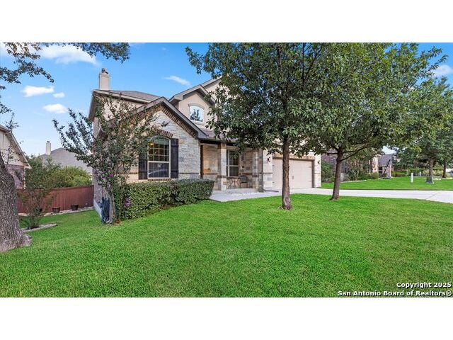 Seller giving you an Incentive of $5000 towards your closing cost!!! Located in a prestigious gated community, this immaculately maintained home offers 4 bedrooms and 4 bathrooms, including dual master suites-perfect for large or multi-generational families and a flex room on the main level that can be used as an office or an additional bedroom. The spacious floor plan features an upgraded kitchen & lighting throughout, a warm inviting fireplace, a versatile upstairs game room for entertainment, and a covered patio deck overlooking a generous backyard, ideal for gatherings and relaxation. Enjoy modern conveniences with an upgraded security system, water softener, and reverse osmosis system, all conveying with the home. The garage provides ample storage space, adding to the home's functionality. This beautiful property blends comfort, style, and convenience with schools in one of Fair Oaks Ranch's most desirable neighborhoods. This is a MUST-SEE!!